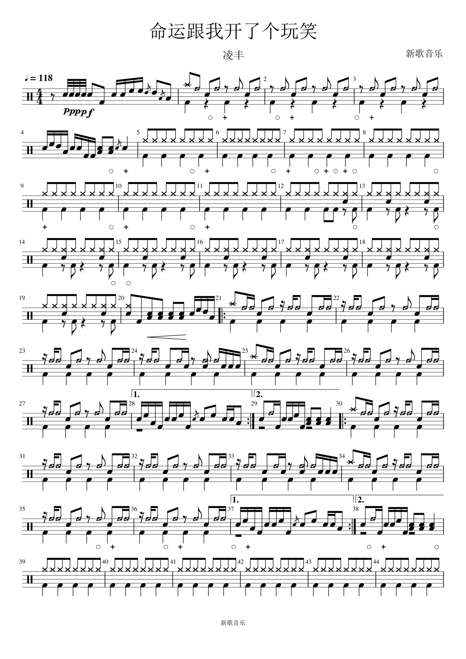 • 命运跟我开了个玩笑鼓谱 - 凌丰 - 架子鼓谱第1张