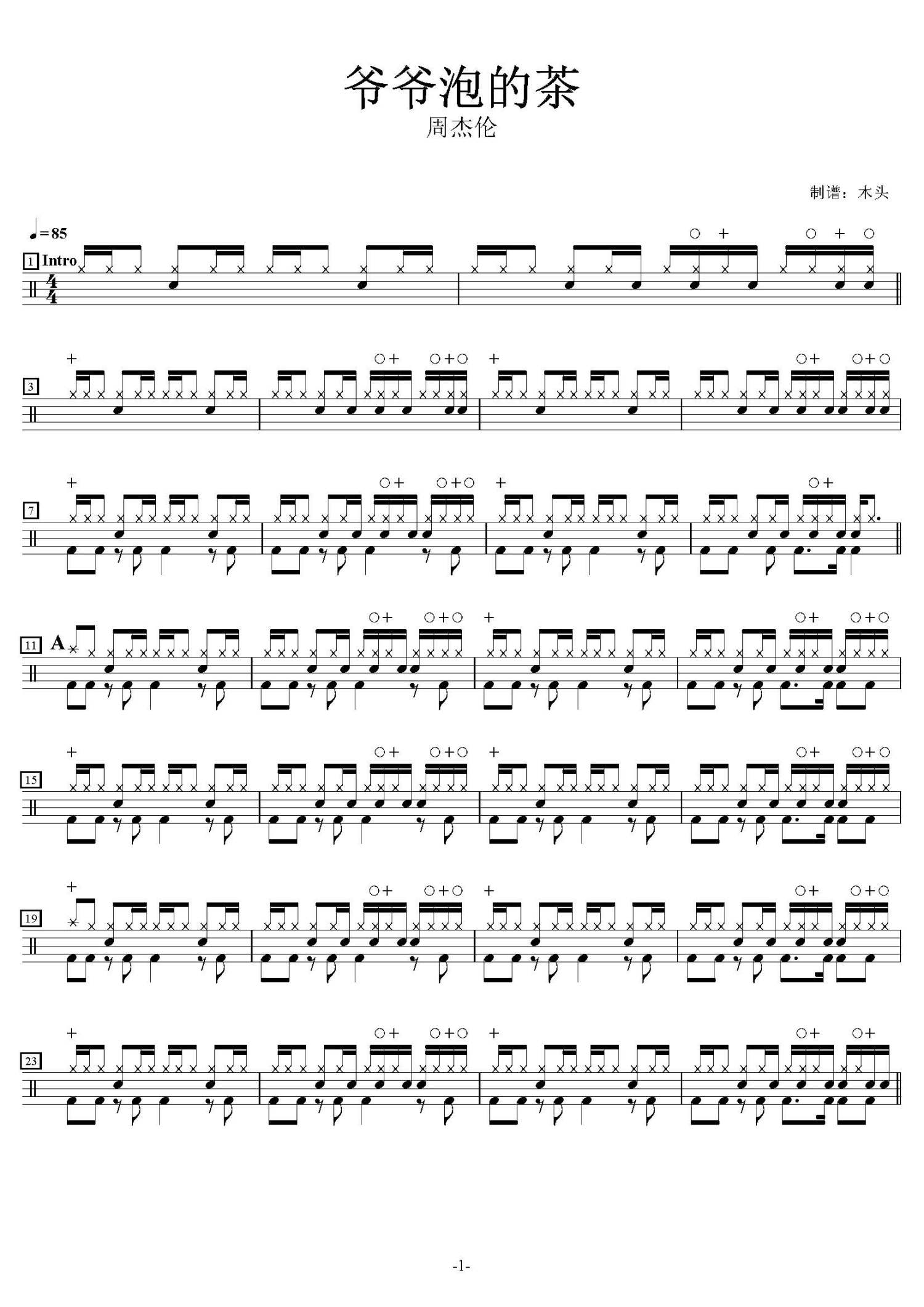 • 爷爷泡的茶鼓谱 - 周杰伦 - 架子鼓谱第1张
