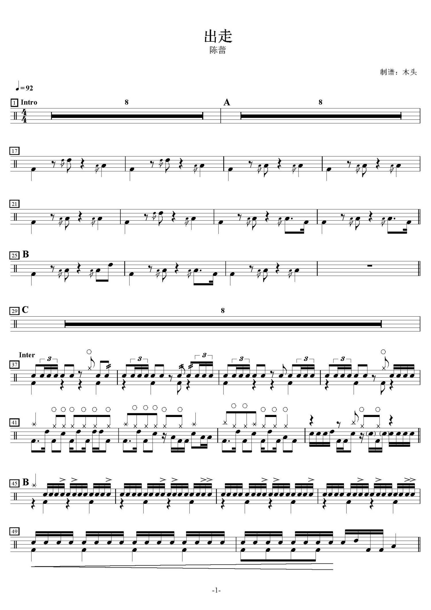 • 出走鼓谱 - 陈蕾 - 架子鼓谱第1张