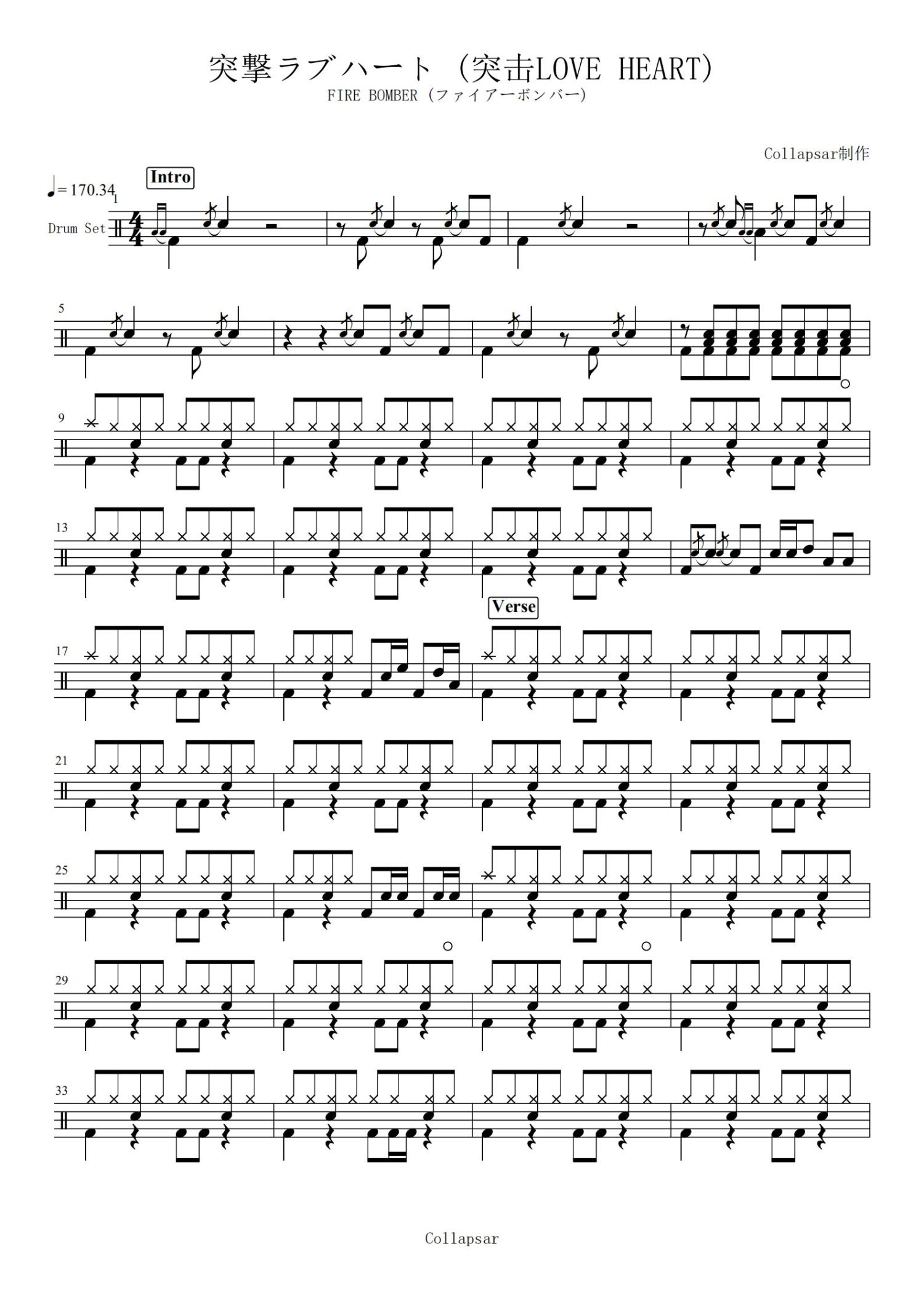 • 突击love heart鼓谱 - FIRE BOMBER - 架子鼓谱第1张