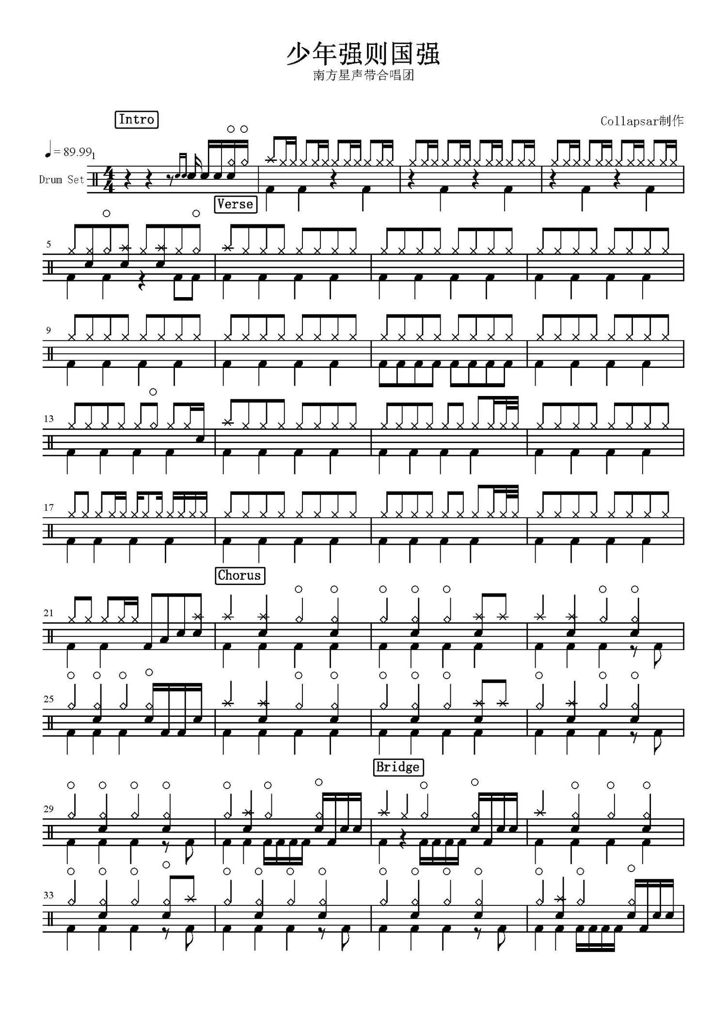 • 少年强则国强鼓谱 - 南方星声带合唱团 - 架子鼓谱第1张