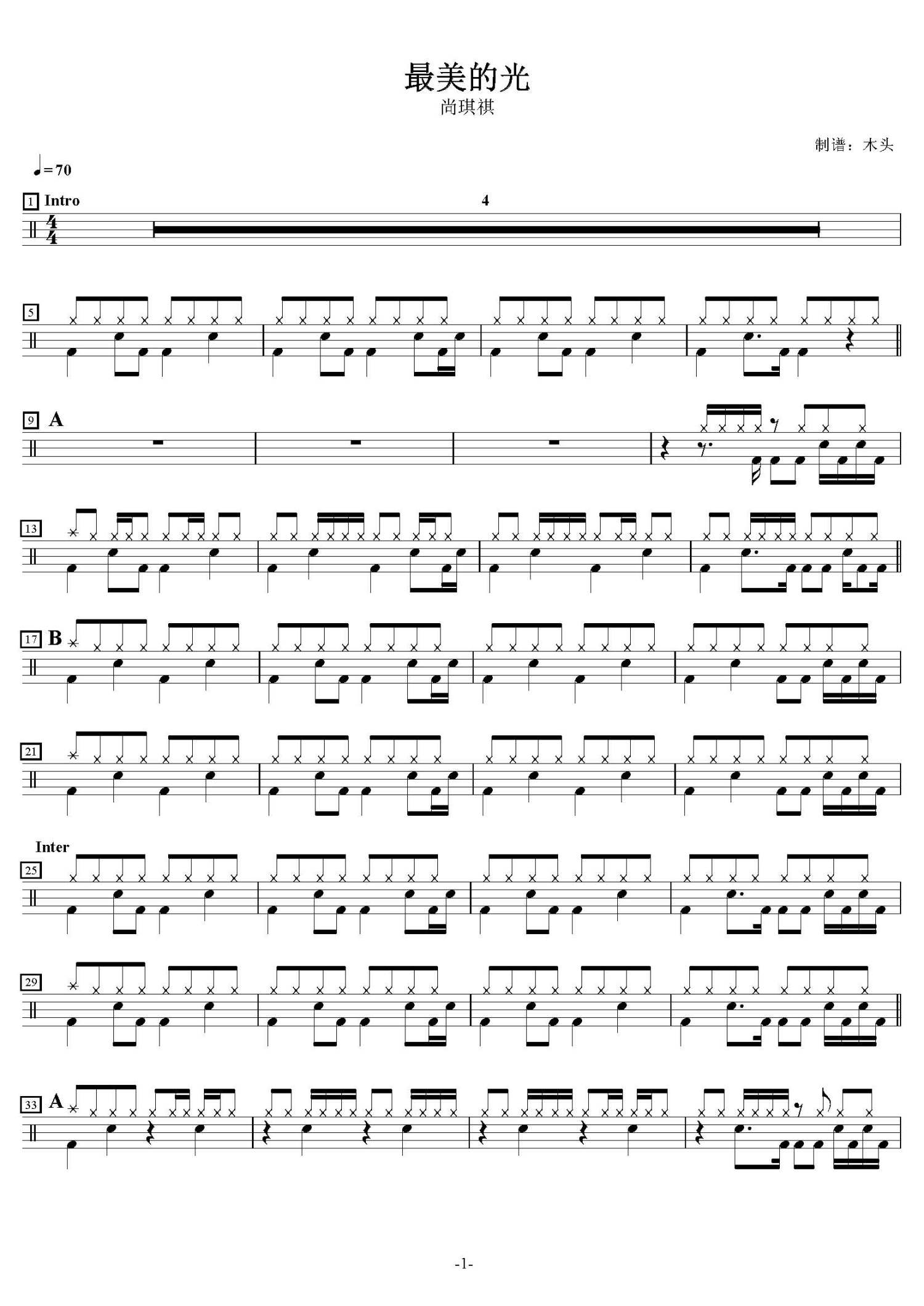 • 最美的光鼓谱 - 尚琪祺 - 架子鼓谱第1张