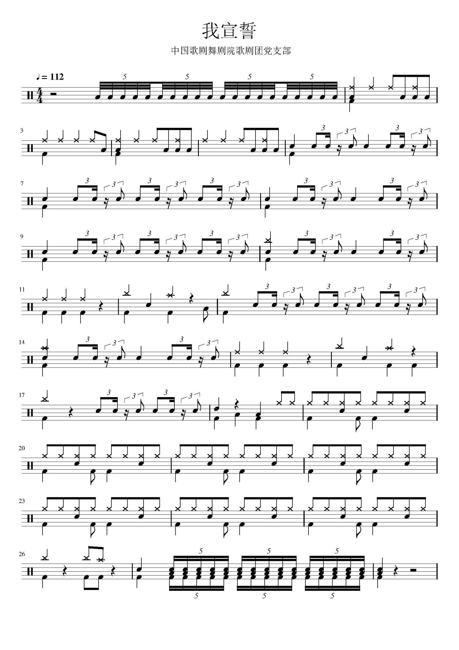 我宣誓鼓谱 - 中国歌剧舞剧院歌剧团党支部 - 架子鼓谱