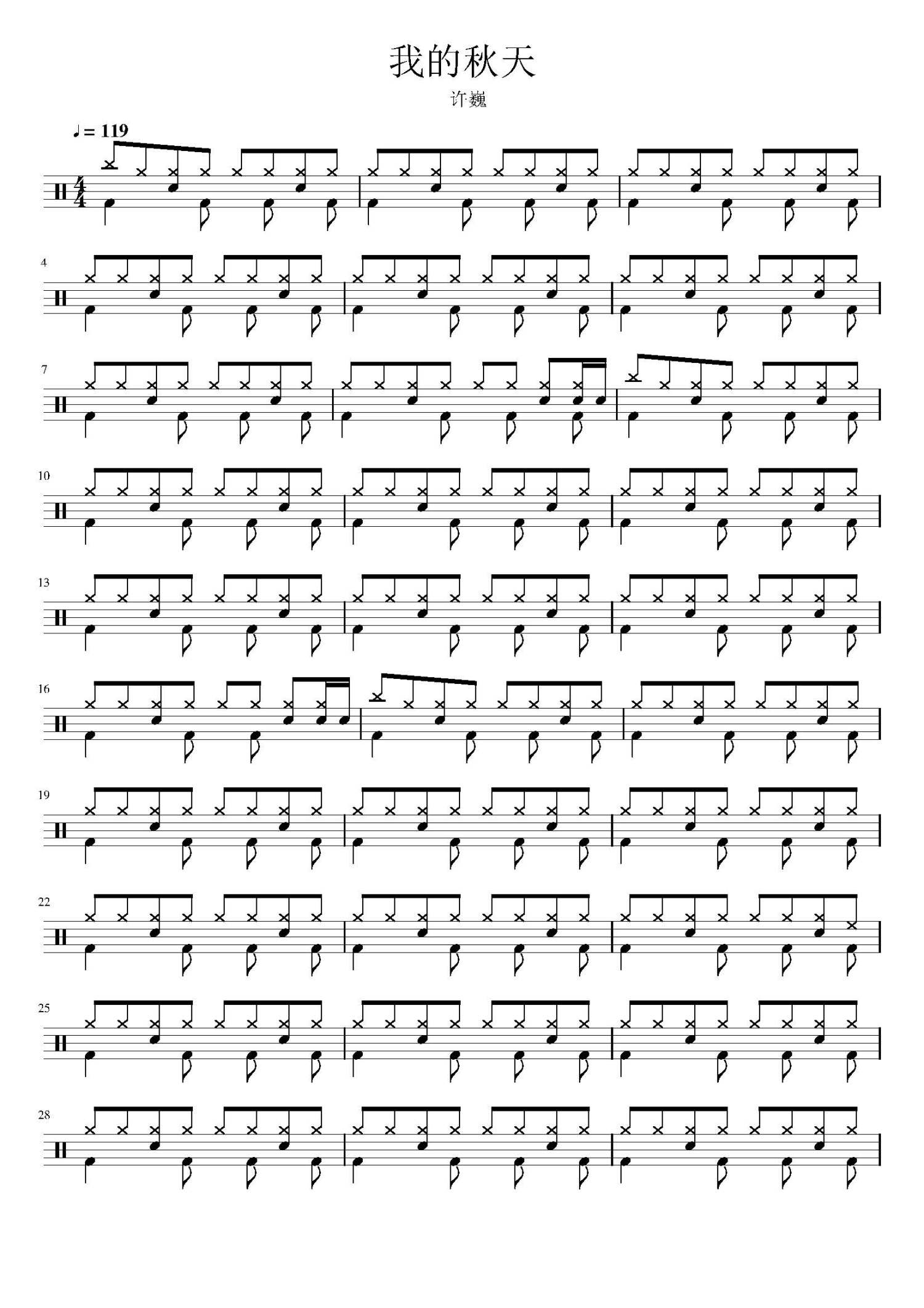 • 我的秋天鼓谱 - 许巍 - 架子鼓谱第1张