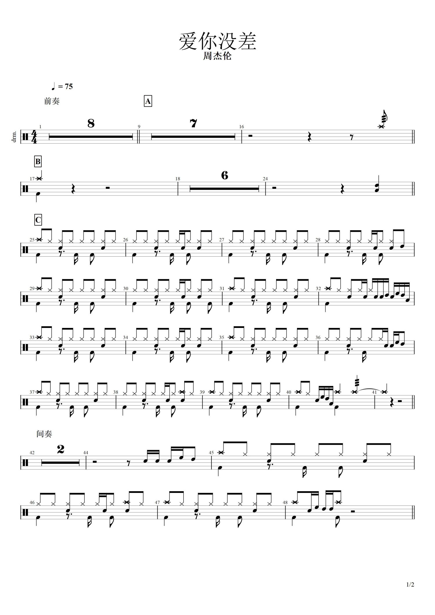 • 爱你没差鼓谱 - 周杰伦 - 架子鼓谱第1张