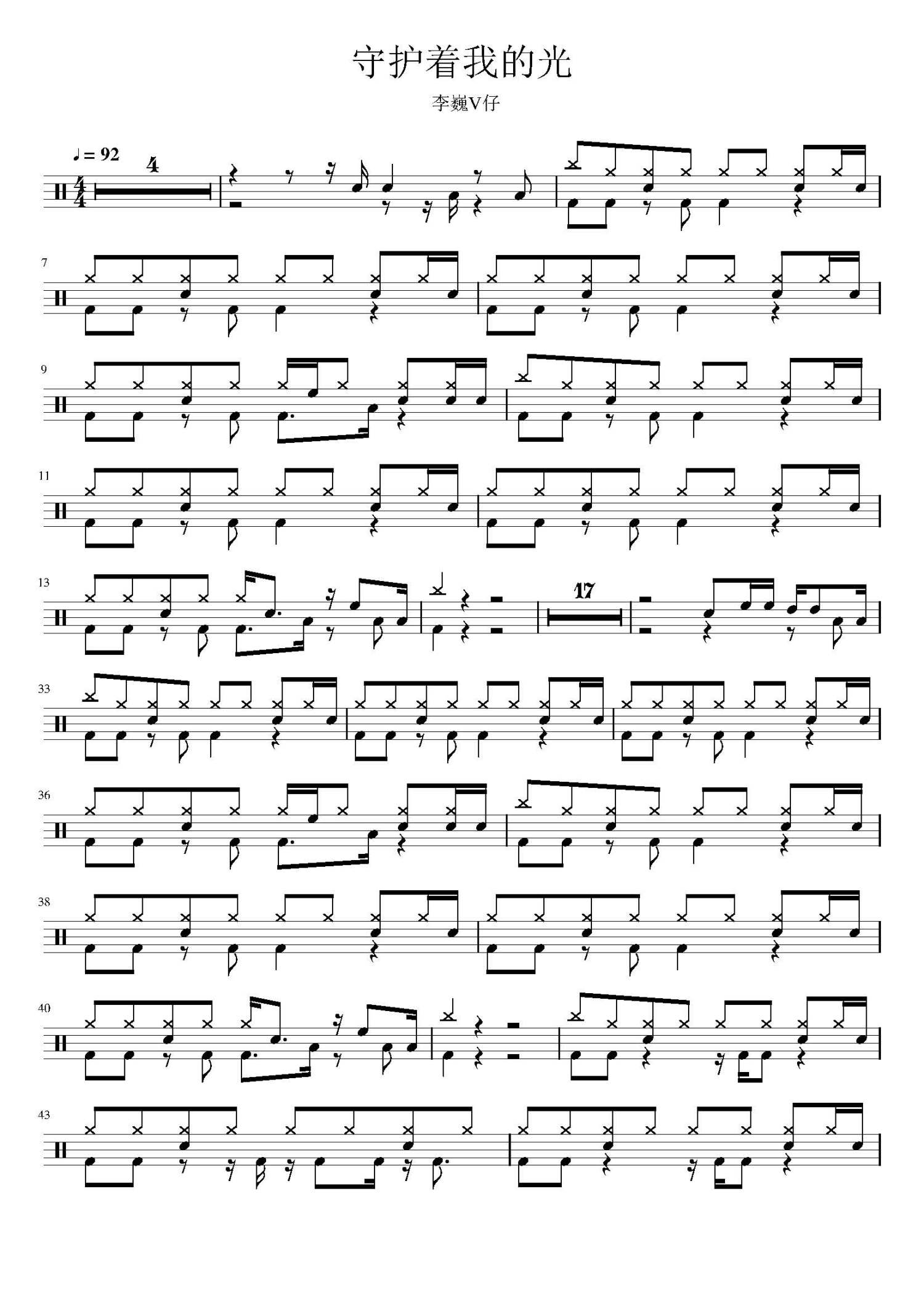 • 守护着我的光鼓谱 - 李巍V仔 - 架子鼓谱第1张