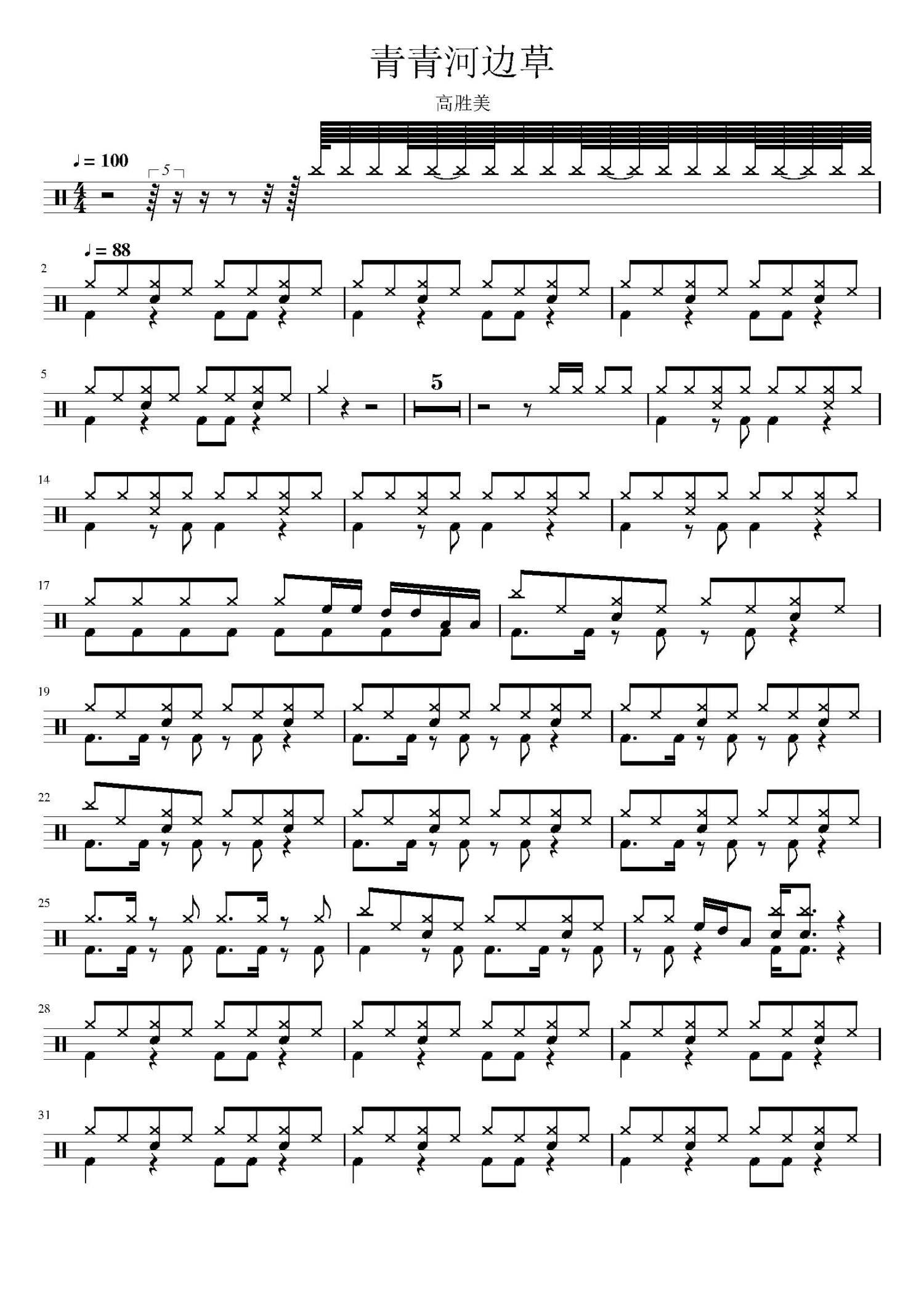 • 青青河边草鼓谱 - 高胜美 - 架子鼓谱第1张