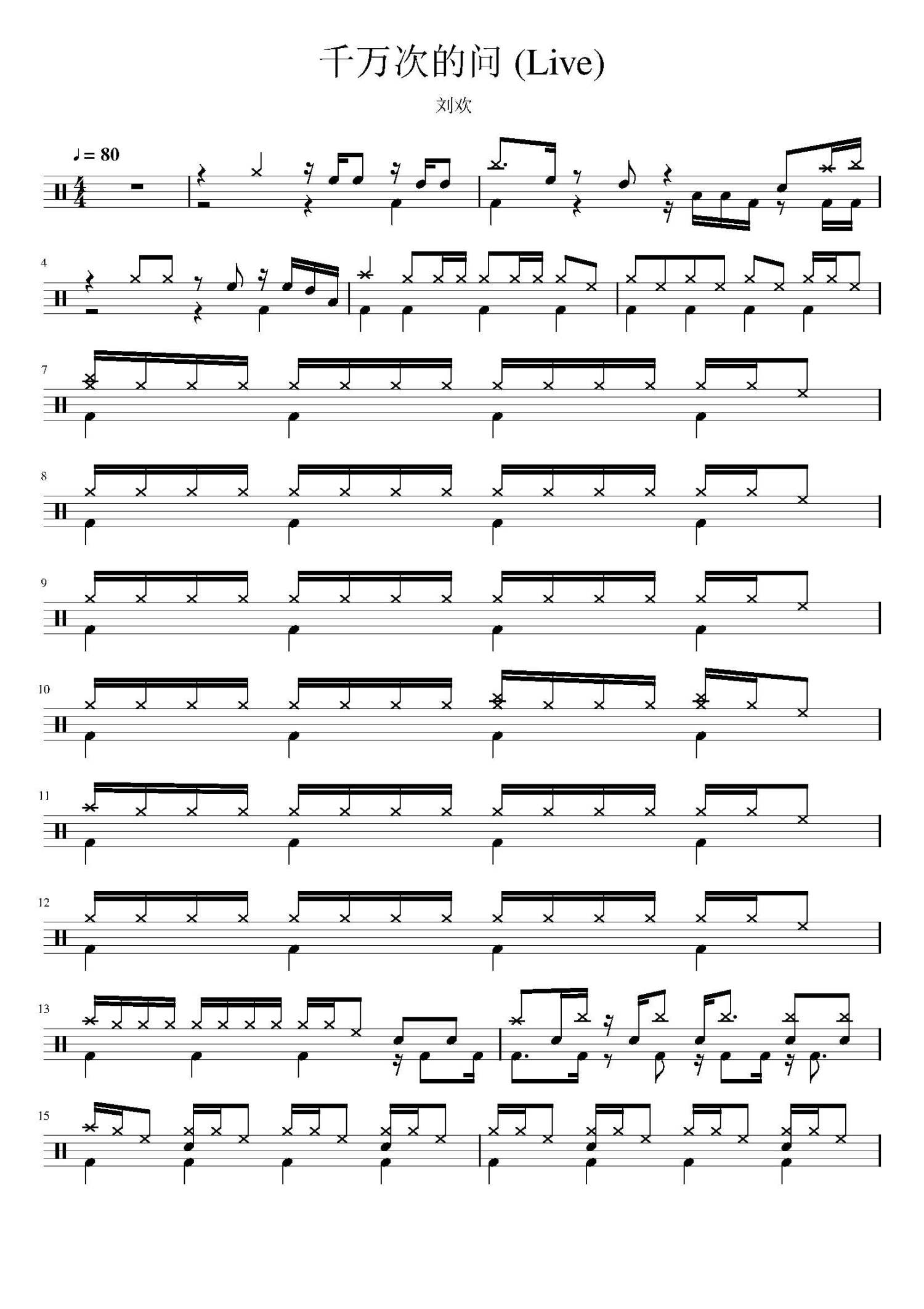 • 千万次的问鼓谱 - 刘欢 - 架子鼓谱第1张