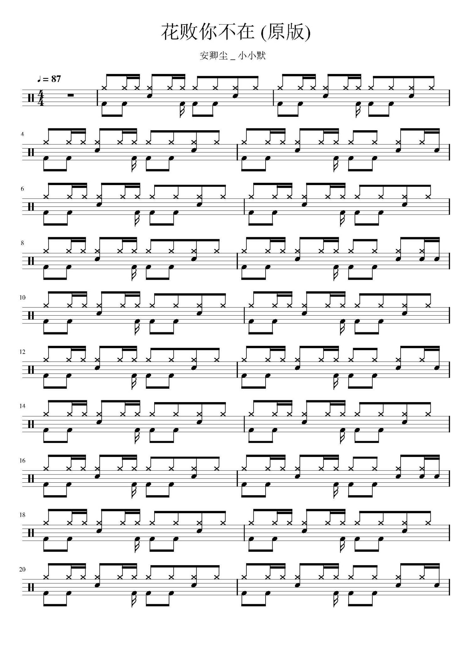 花败你不在鼓谱 - 安卿尘/小小默 - 架子鼓谱
