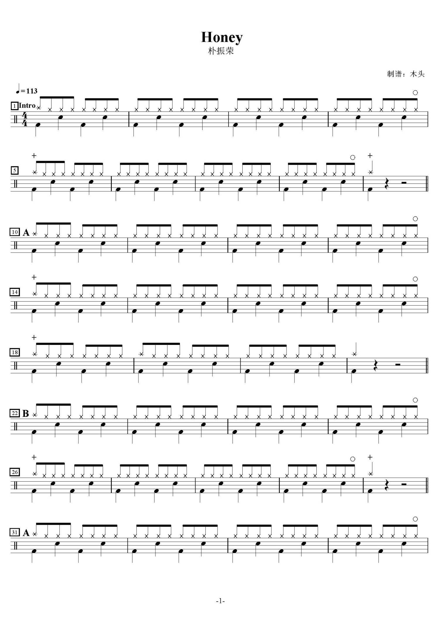 • Honey鼓谱 - 朴振荣 - 架子鼓谱第1张