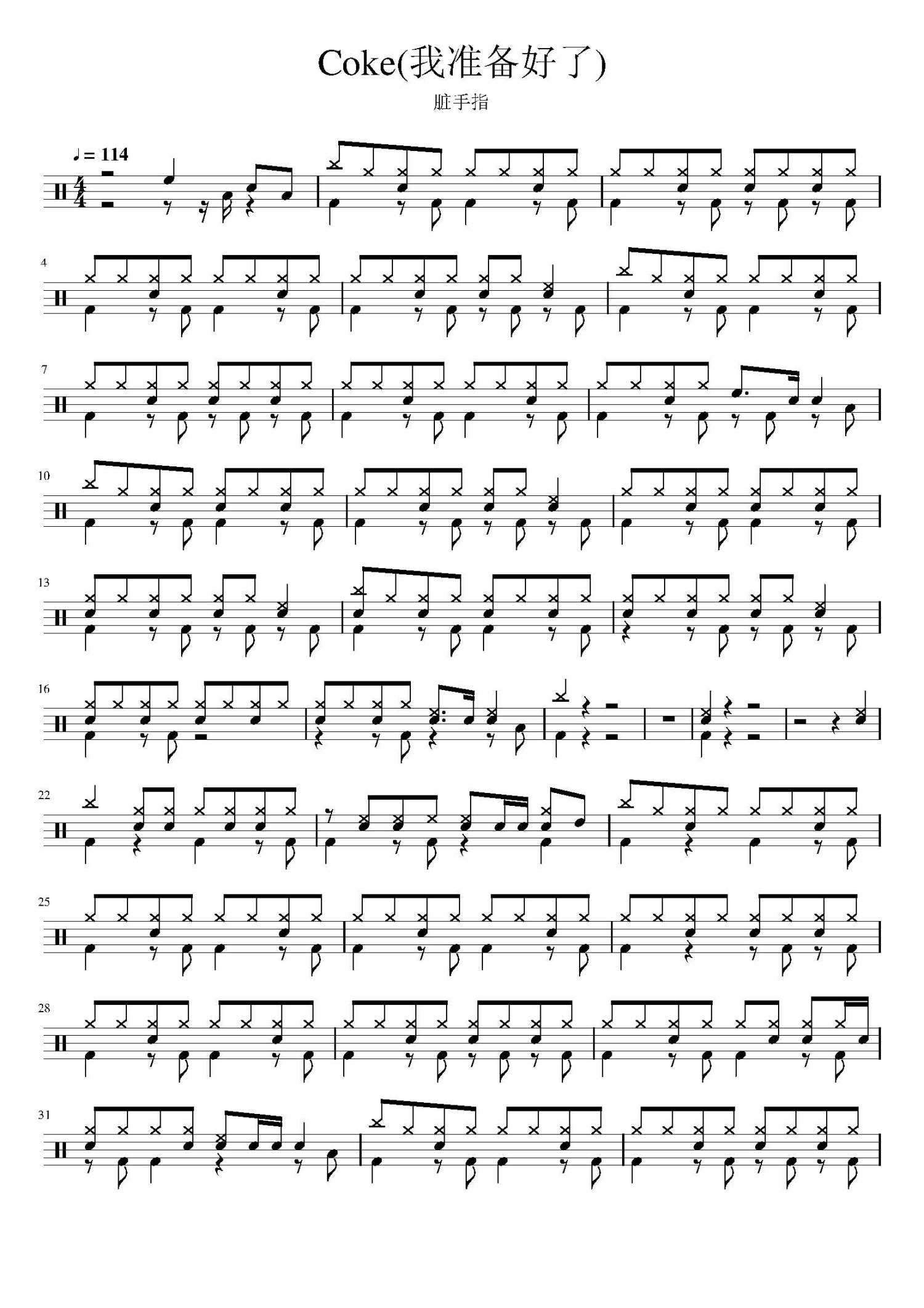 • Coke鼓谱 - 脏手指 - 架子鼓谱第1张