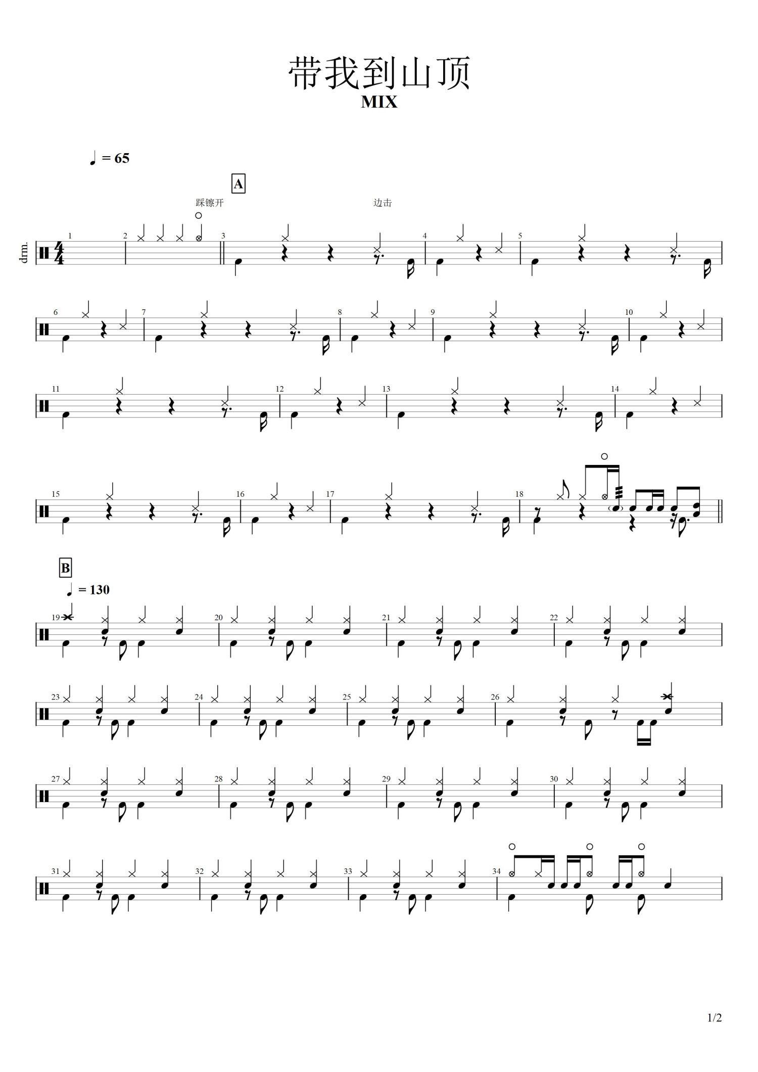 • 带我到山顶鼓谱 - MIX - 架子鼓谱第1张