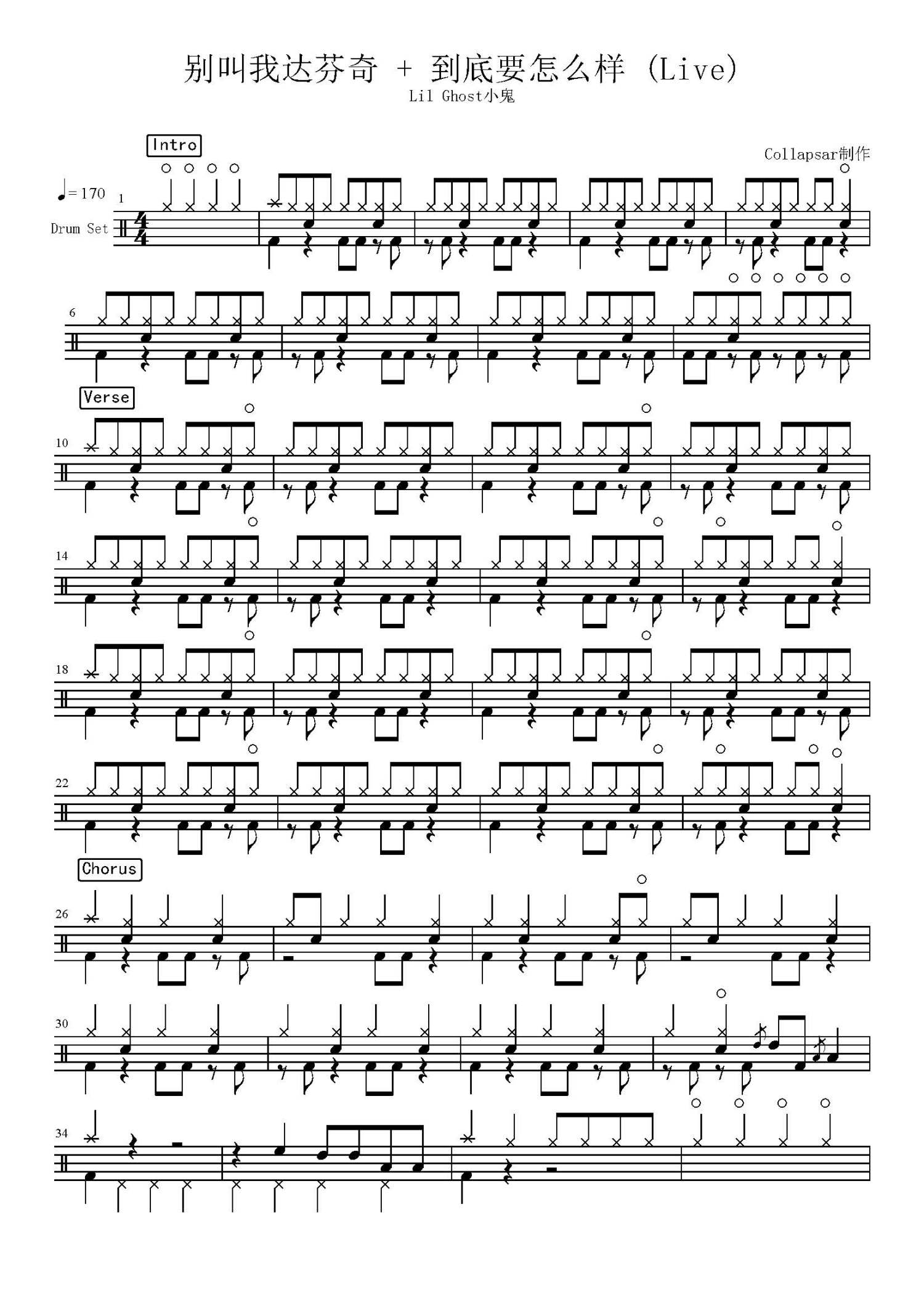 • 别叫我达芬奇 + 到底要怎么样鼓谱 - Lil Ghost小鬼 - 架子鼓谱第1张