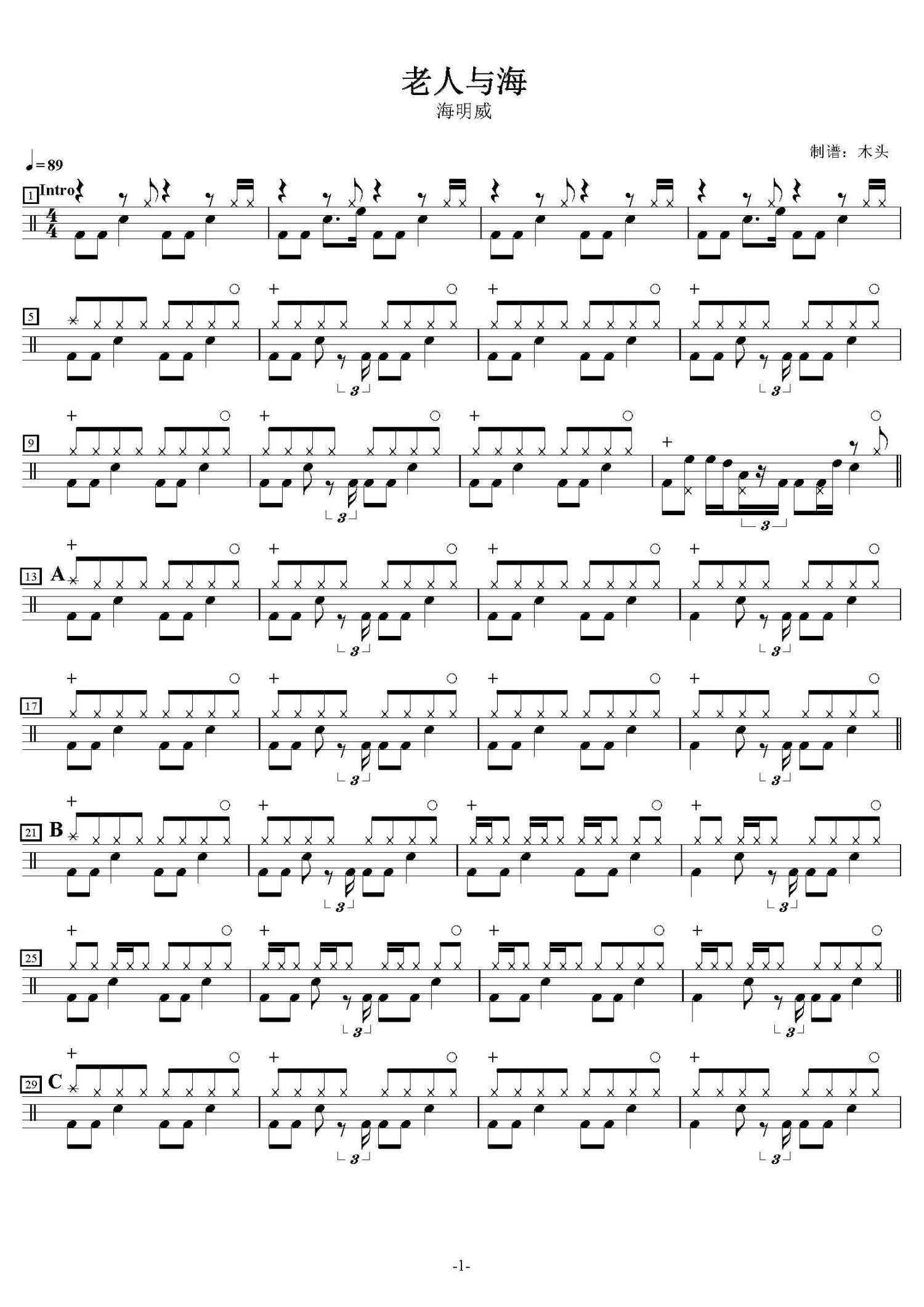 老人与海鼓谱 - 海明威 - 架子鼓谱