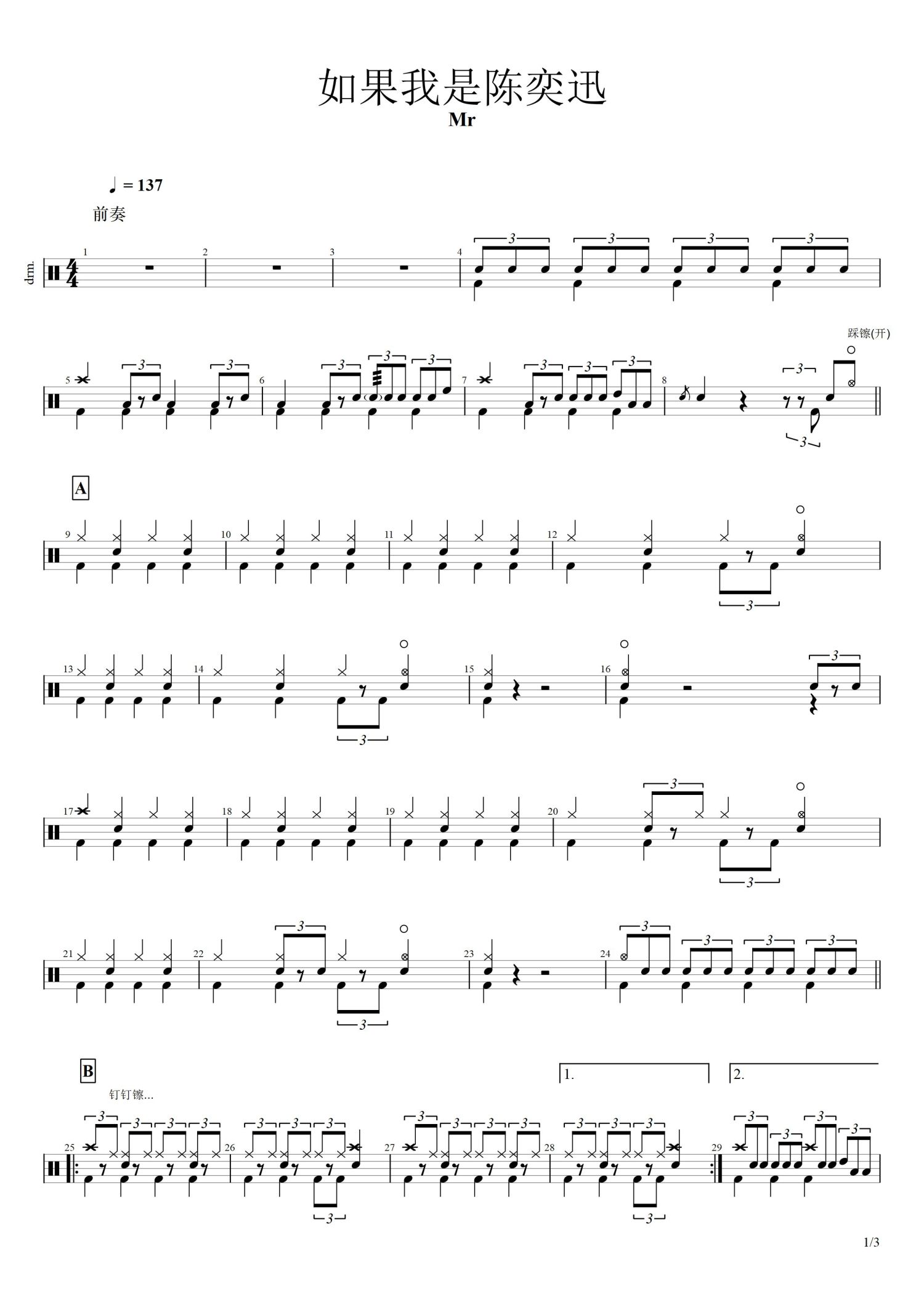 如果我是陈奕迅鼓谱 - Mr. - 架子鼓谱