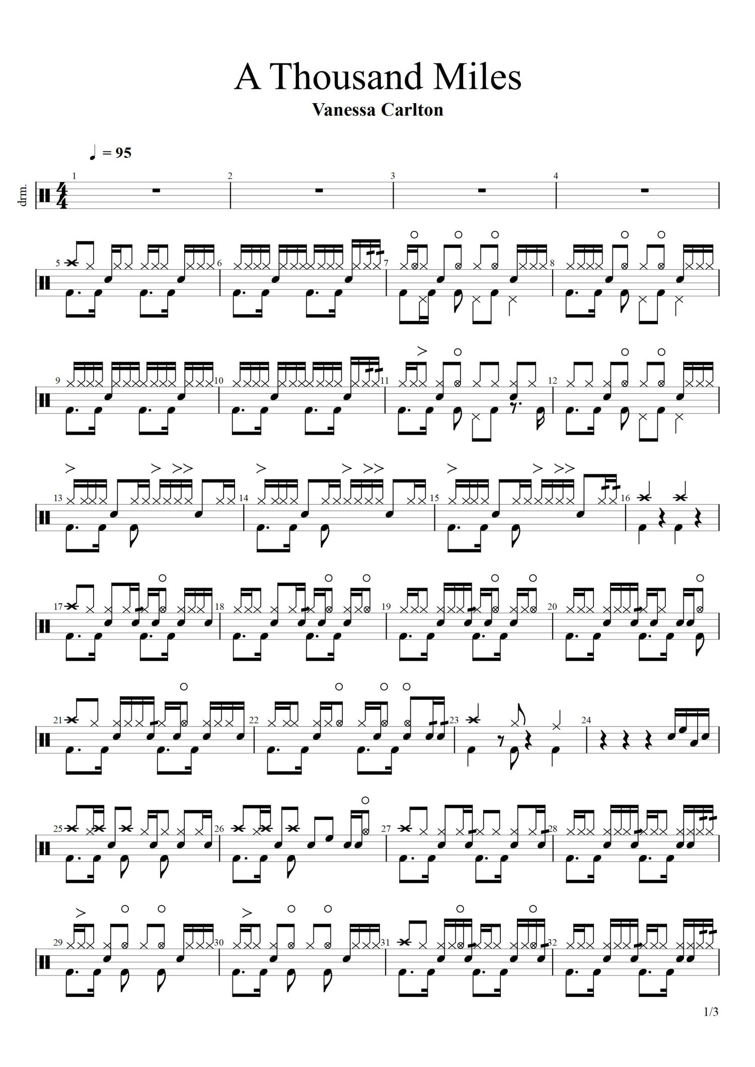 • A Thousand Miles鼓谱 - Vanessa Carlton - 架子鼓谱第1张