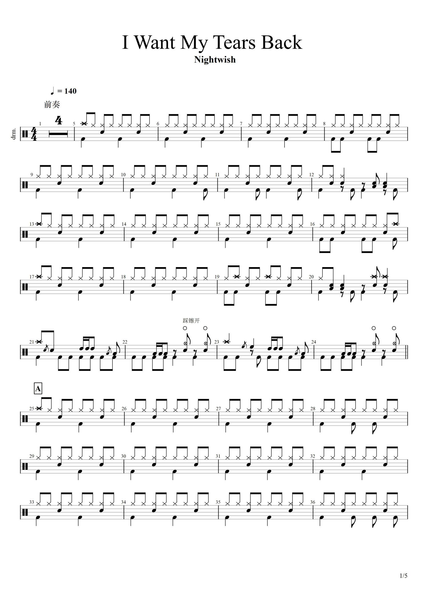 • I Want My Tears Back鼓谱 - Nightwish - 架子鼓谱第1张
