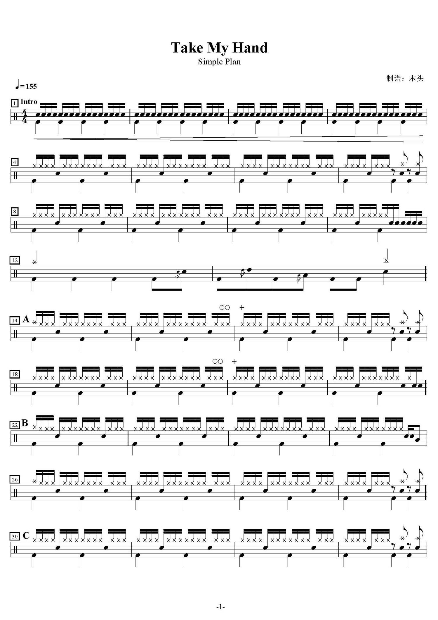 • Take My Hand鼓谱 - Simple Plan - 架子鼓谱第1张