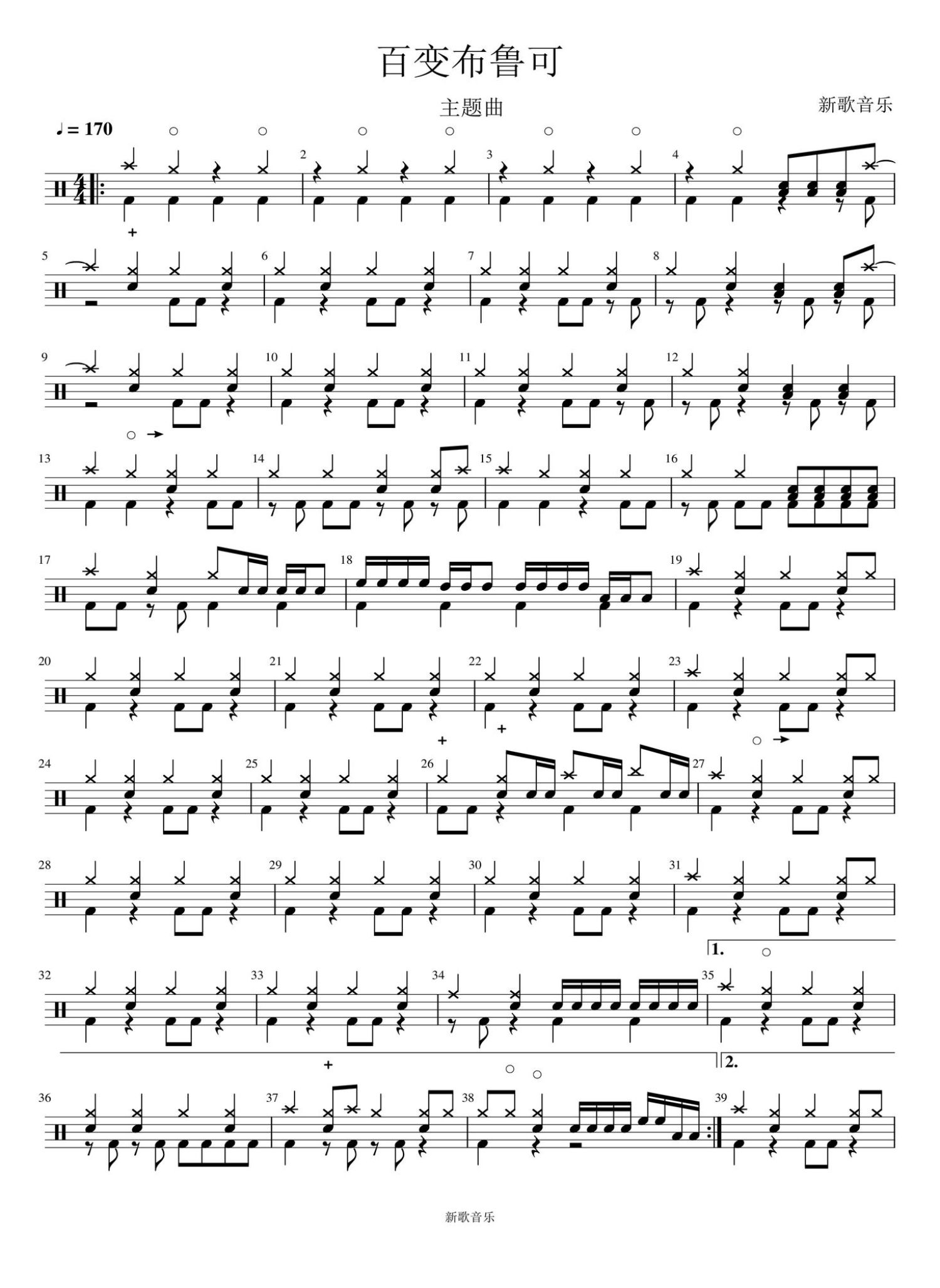 • 百变布鲁可鼓谱 - 葡萄动画 - 架子鼓谱第1张