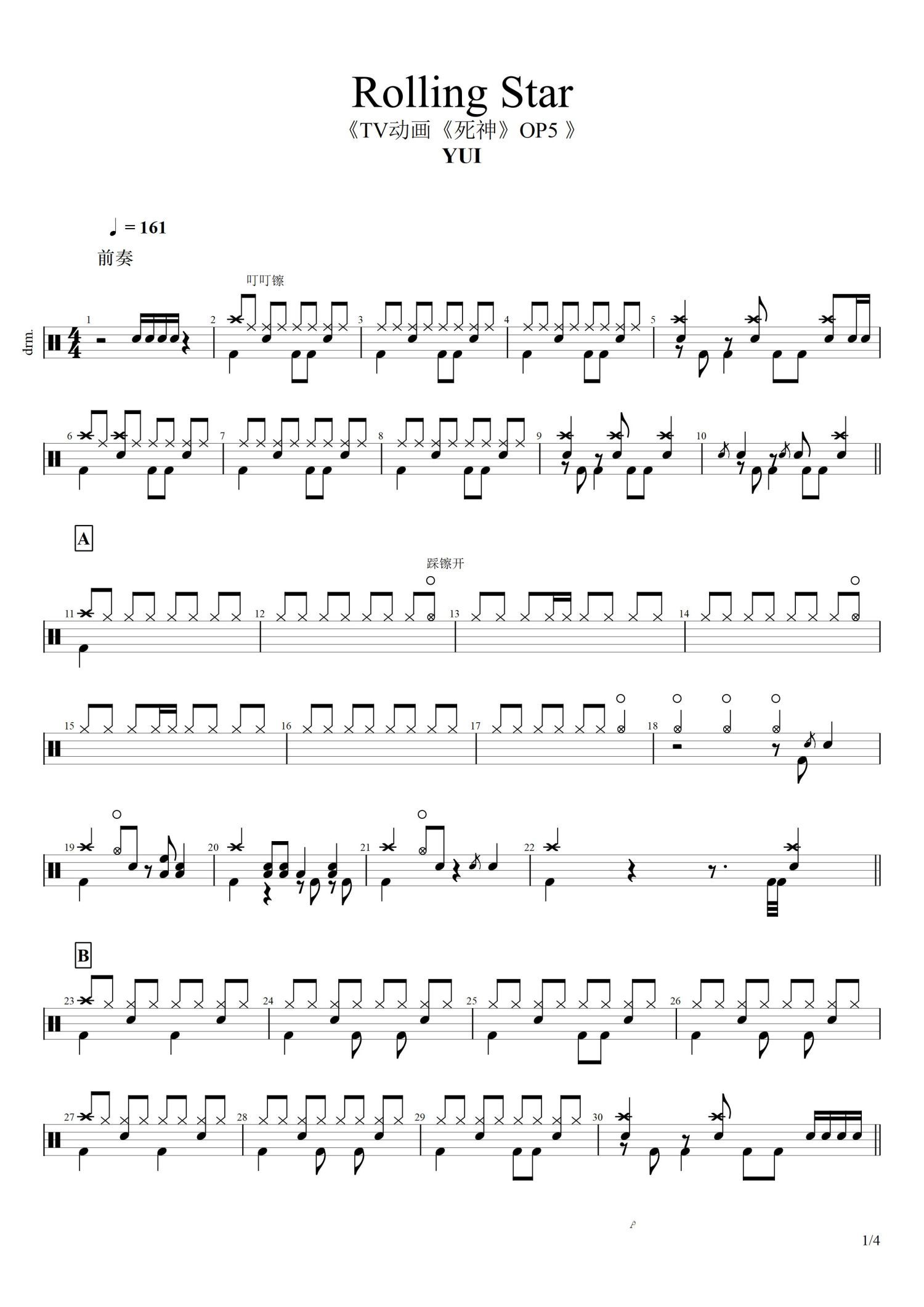 • Rolling Star鼓谱 - YUI - 架子鼓谱第1张