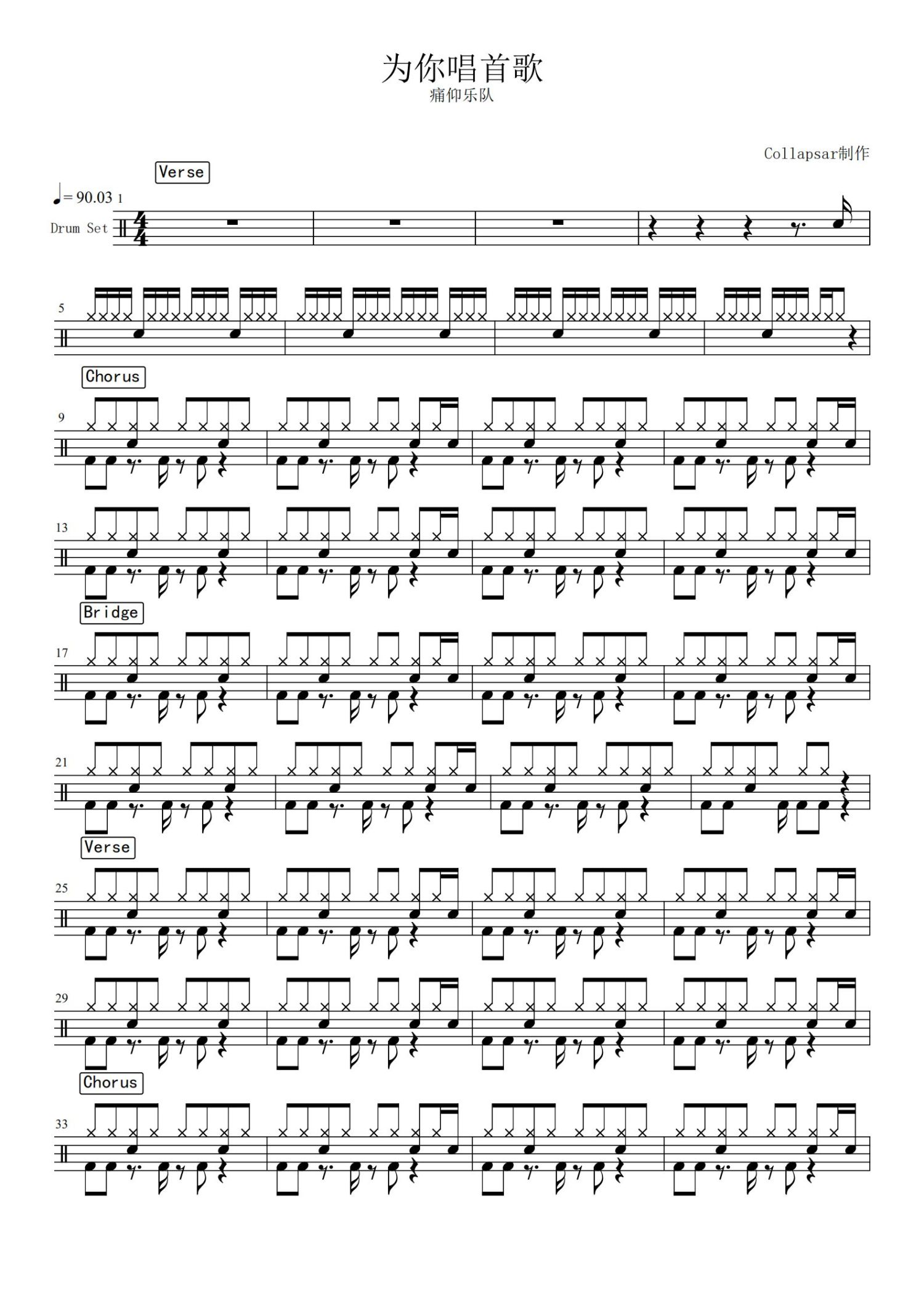 • 为你唱首歌鼓谱 - 痛仰乐队 - 架子鼓谱第1张