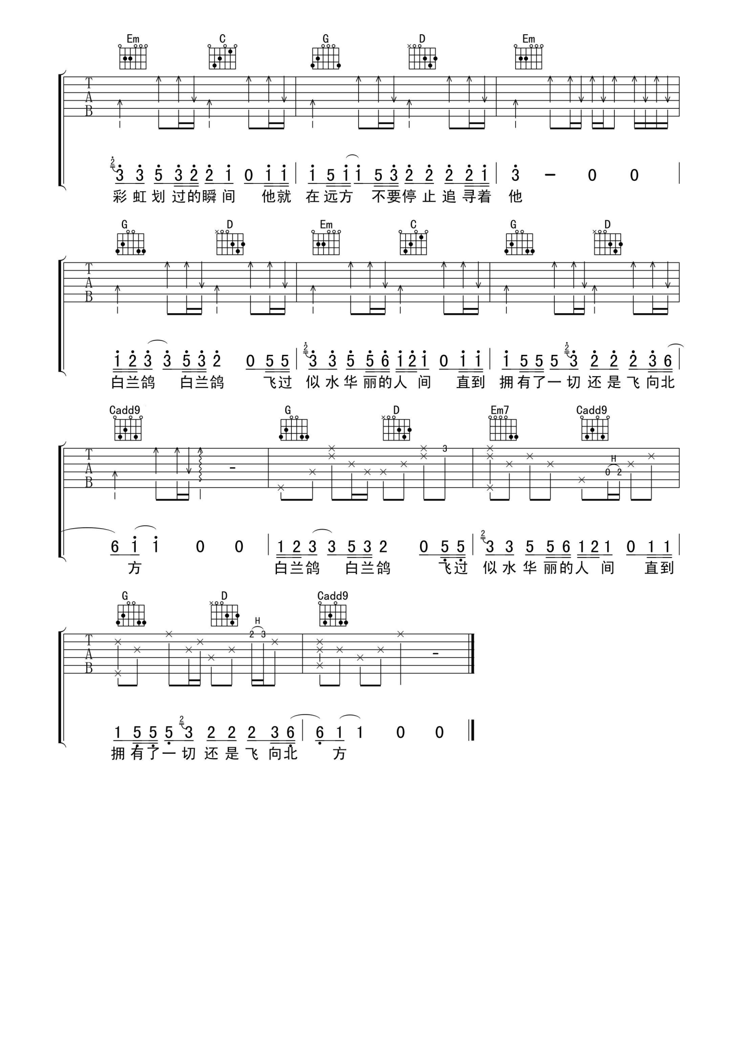 当前位置:琴谱网>吉他弹唱>白兰鸽巡游记
