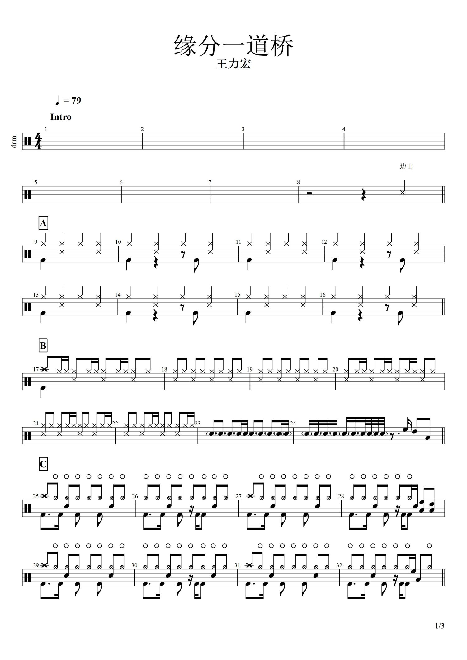 • 缘分一道桥鼓谱 - 王力宏 - 架子鼓谱第1张