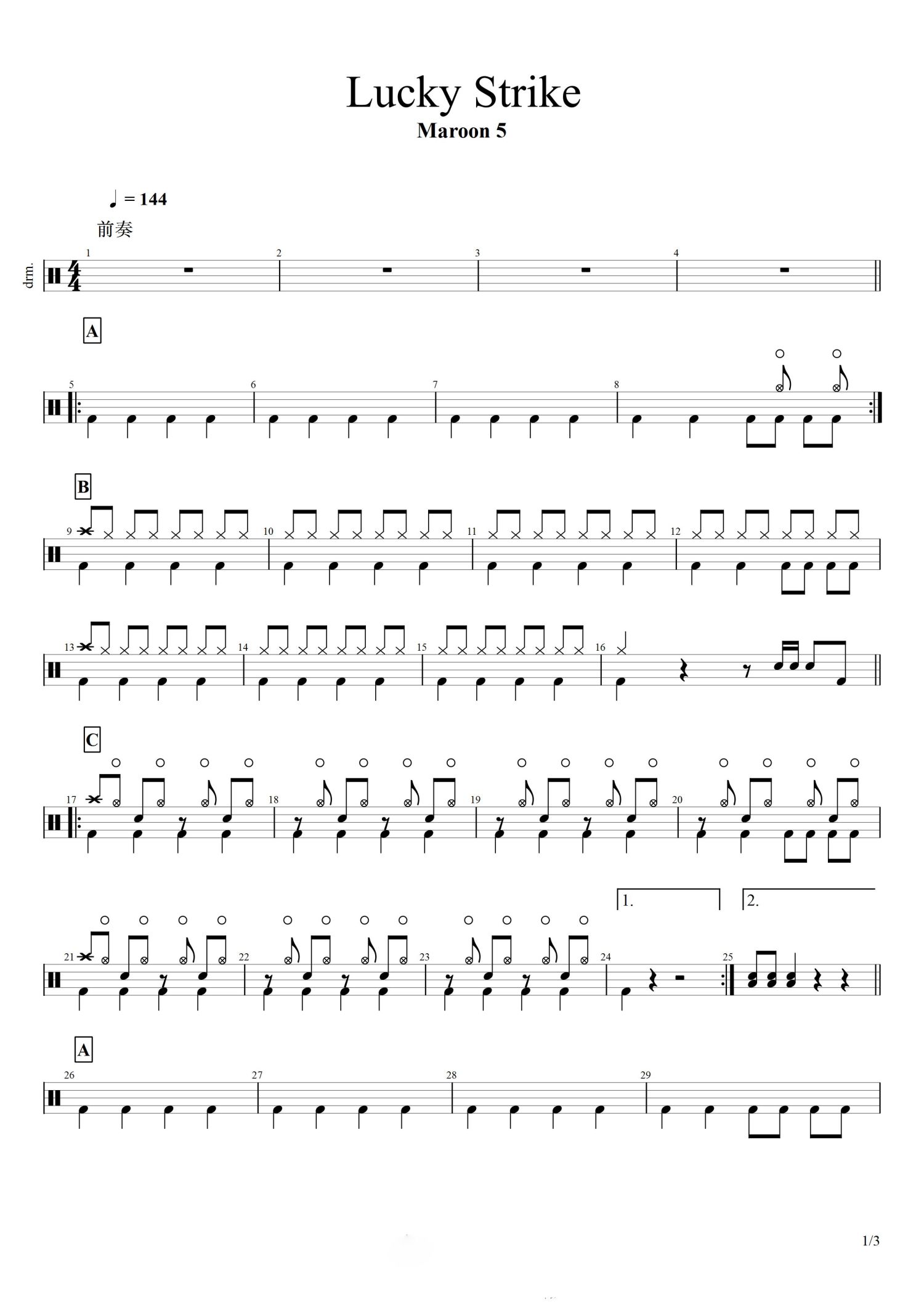 • Lucky Strike鼓谱 - Maroon 5 - 架子鼓谱第1张