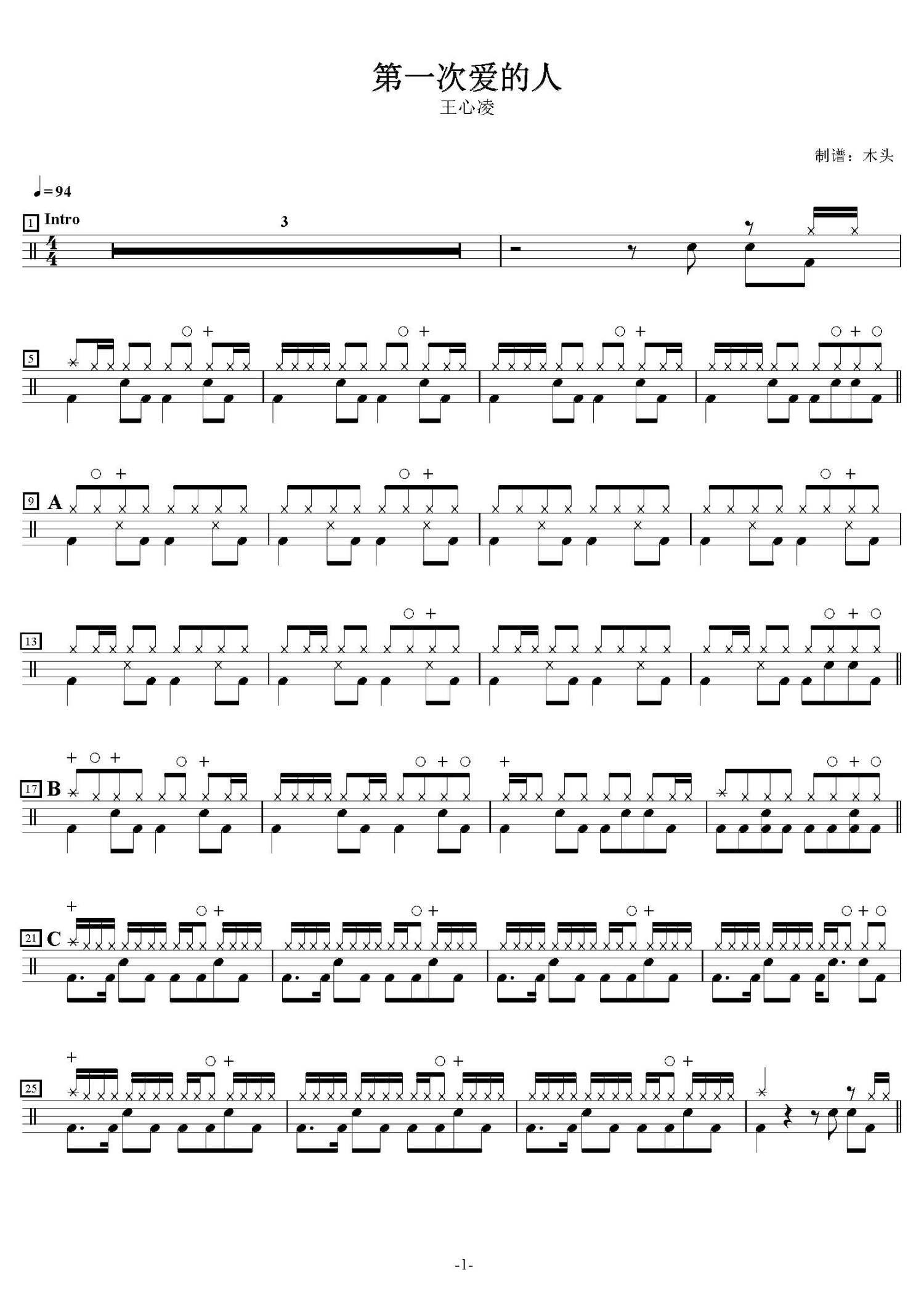 • 第一次爱的人鼓谱 - 王心凌 - 架子鼓谱第1张