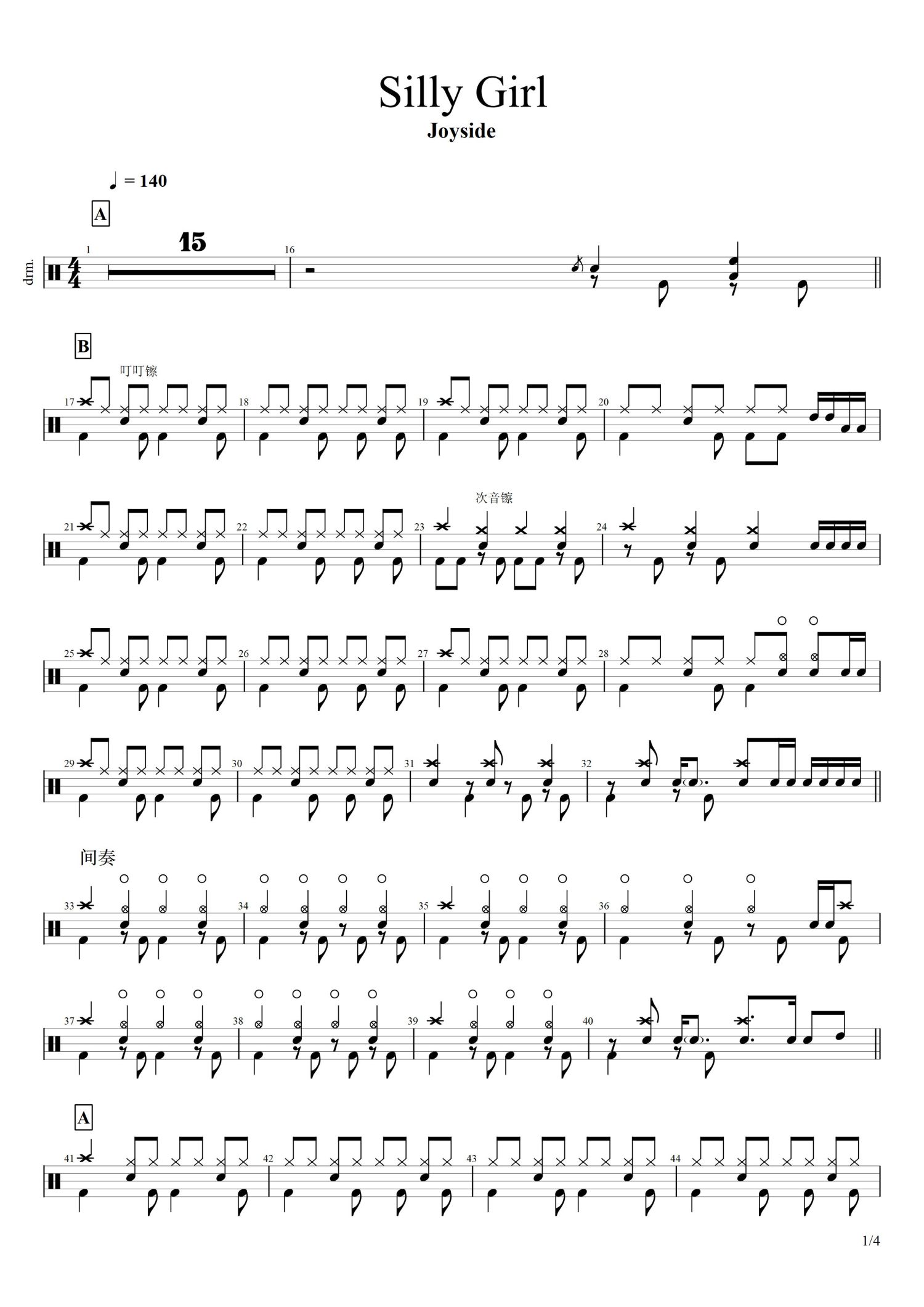 • Silly Girl鼓谱 - Joyside - 架子鼓谱第1张