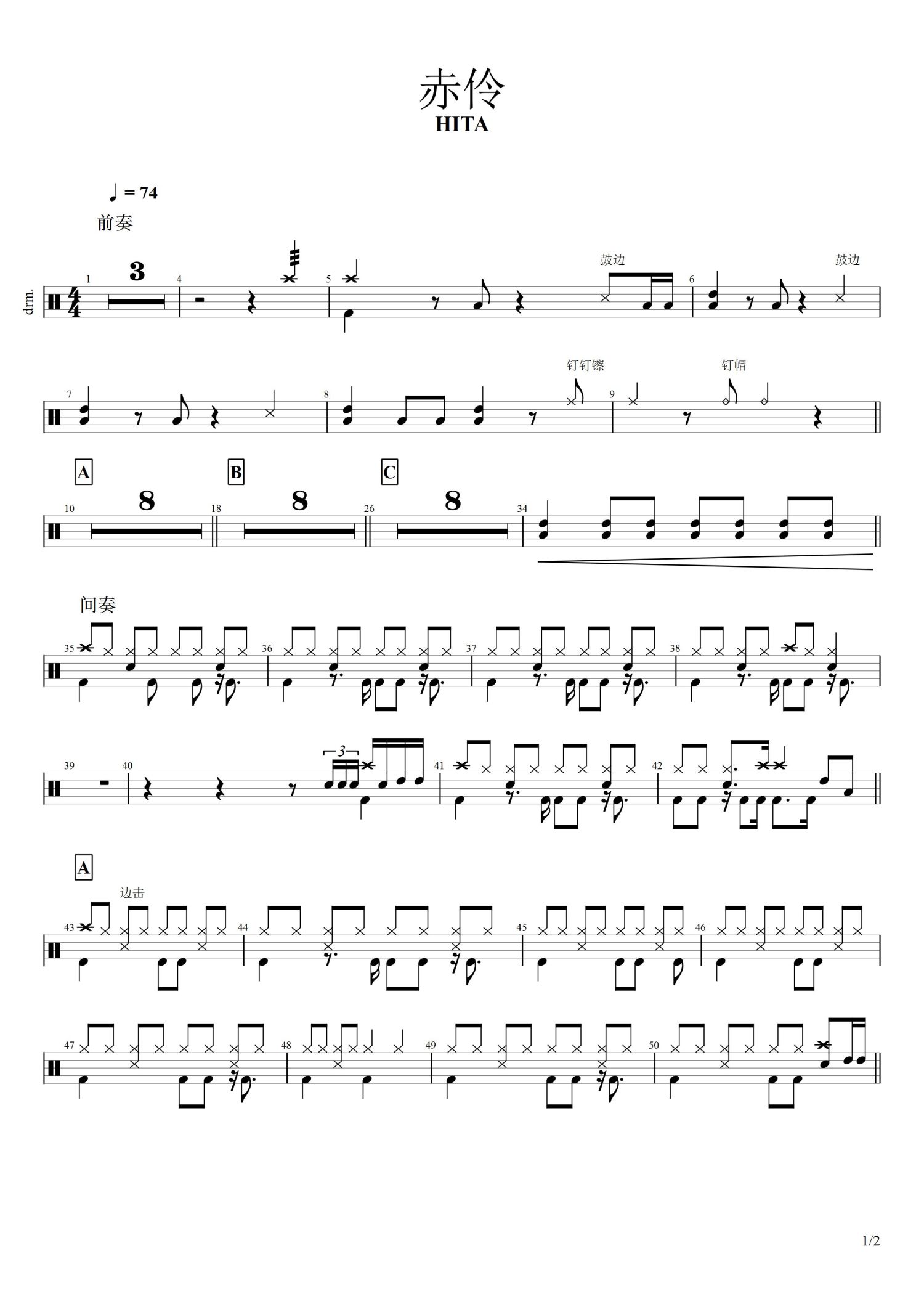 • 赤伶鼓谱 - HITA - 架子鼓谱第1张