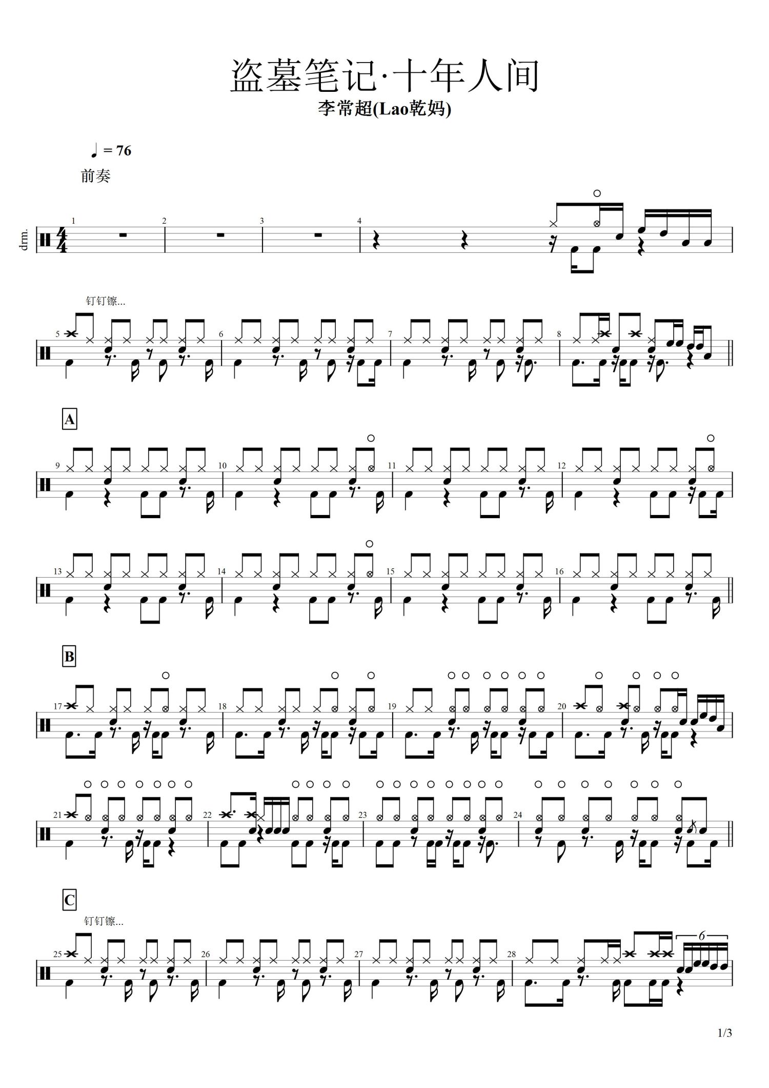 • 十年人间鼓谱 - 李超常 - 架子鼓谱第1张