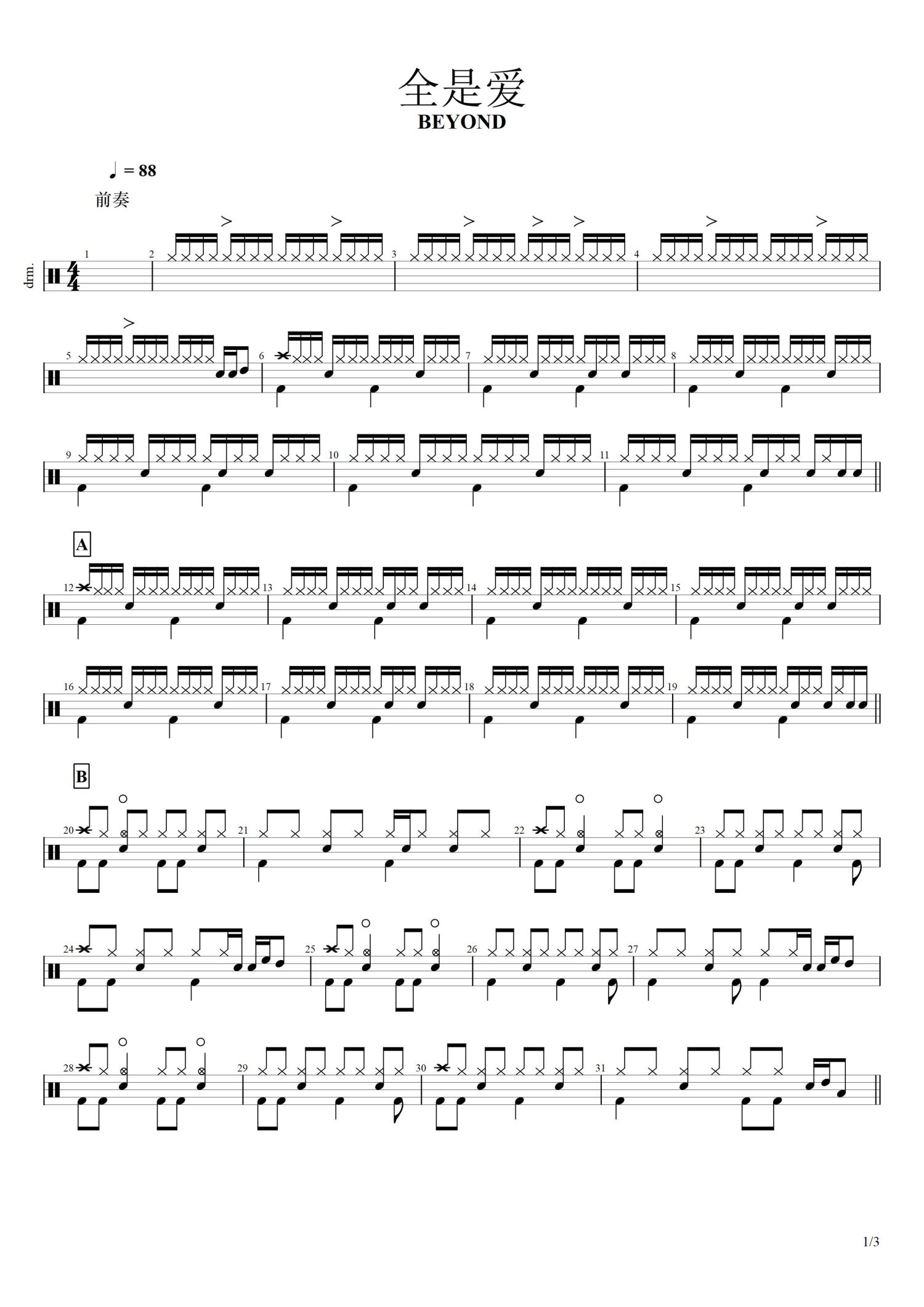 • 全是爱鼓谱 - Beyond - 架子鼓谱第1张
