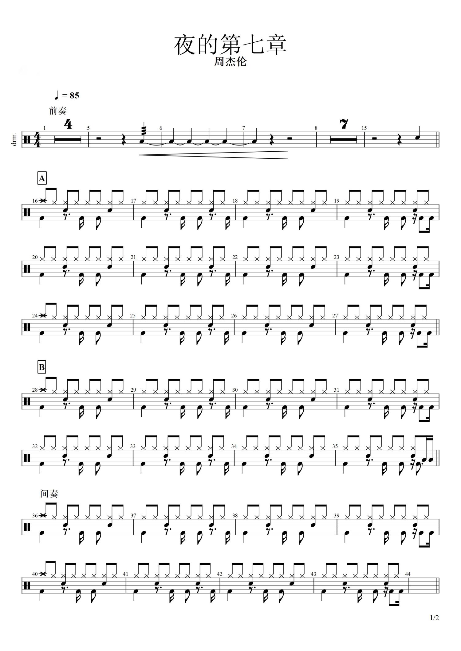 • 夜的第七章鼓谱 - 周杰伦 - 架子鼓谱第1张