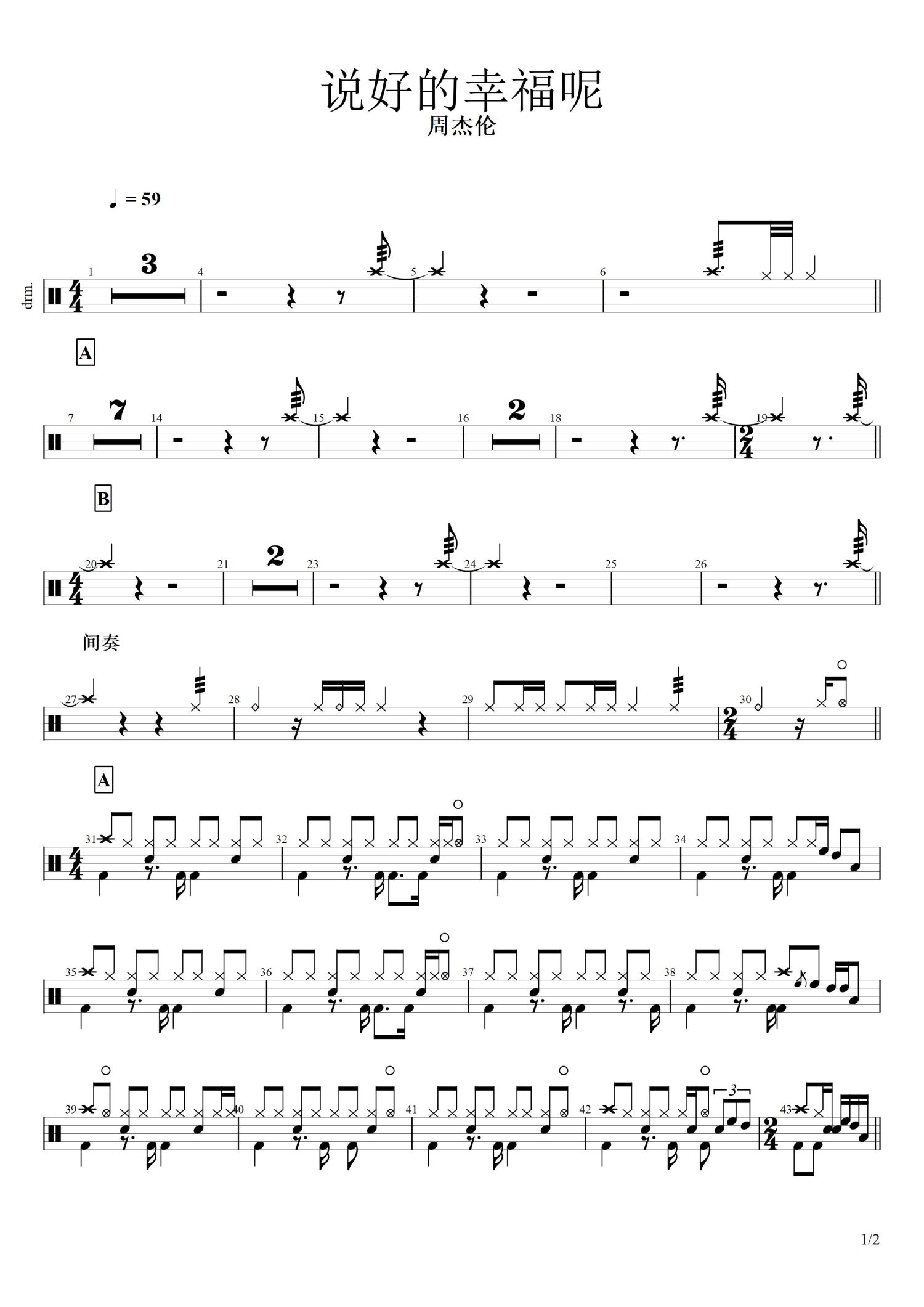 • 说好的幸福呢鼓谱 - 周杰伦 - 架子鼓谱第1张