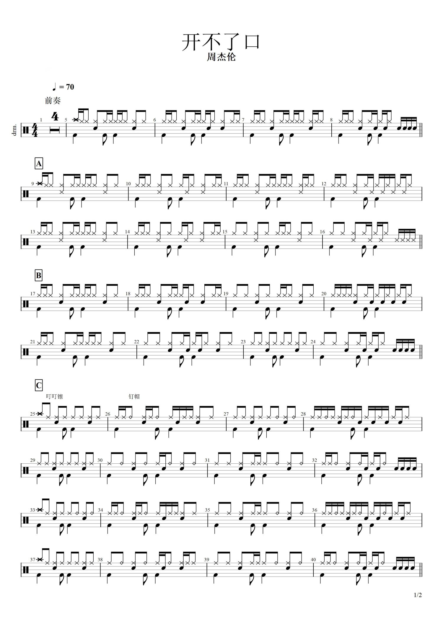 • 开不了口鼓谱 - 周杰伦 - 架子鼓谱第1张