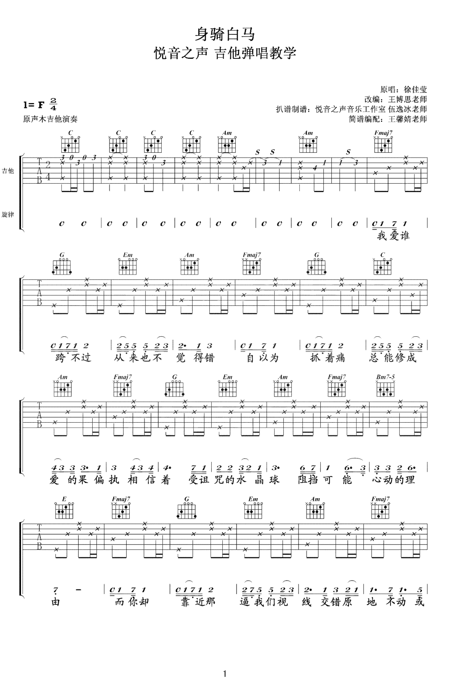 身骑白马吉他谱 - 徐佳莹 - C调吉他弹唱谱