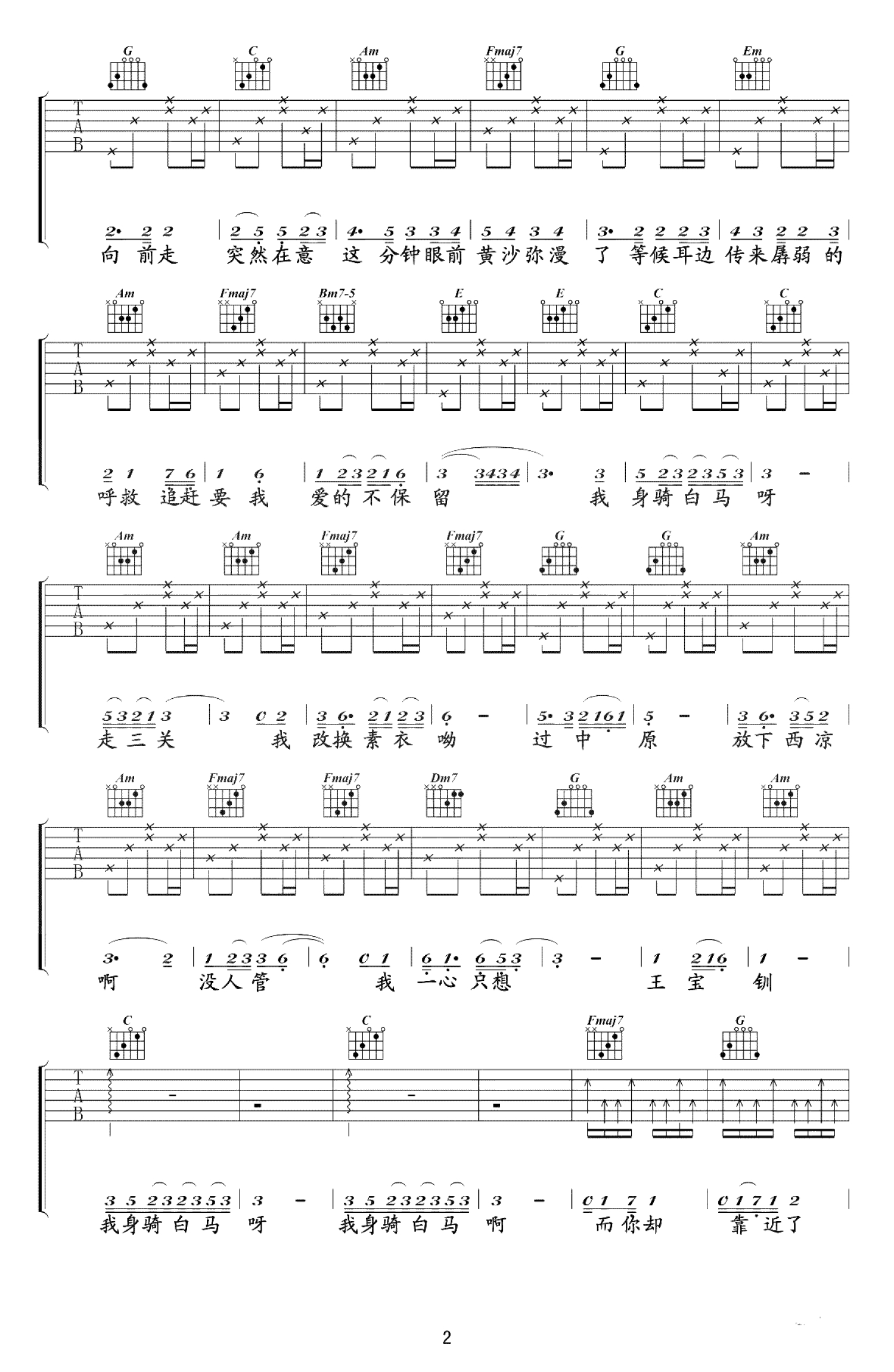 当前位置:琴谱网>吉他弹唱>身骑白马