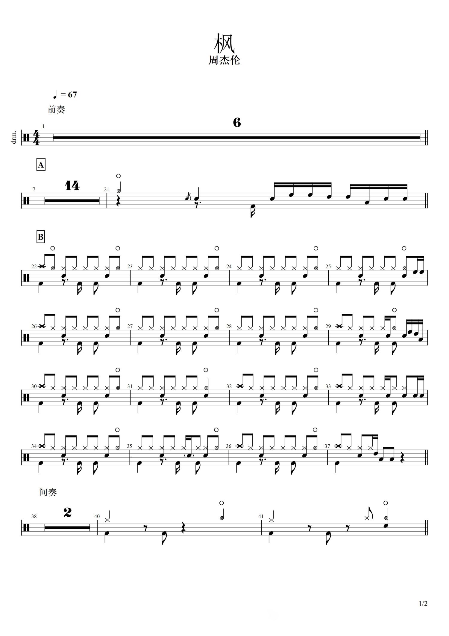• 枫鼓谱 - 周杰伦 - 架子鼓谱第1张