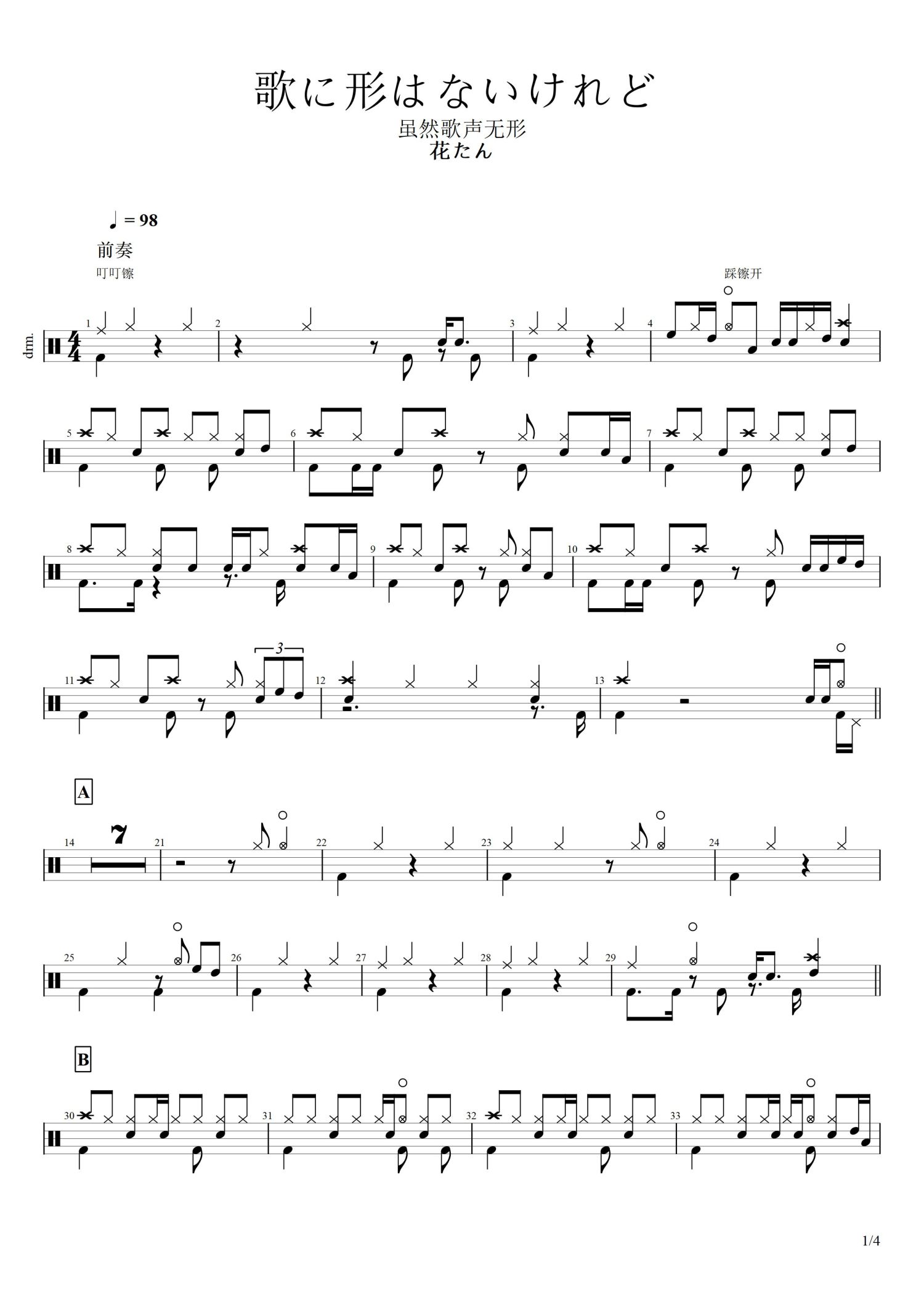 当前位置:琴谱网>架子鼓谱>花たん-歌に形はないけれど