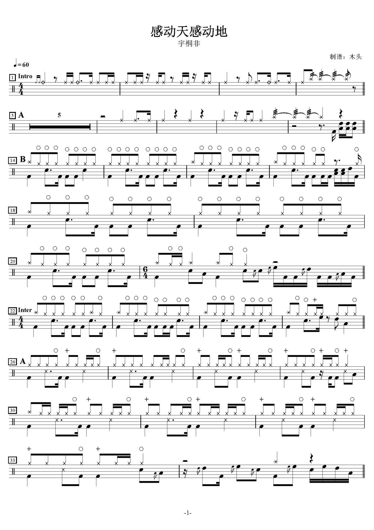 • 感动天感动地鼓谱 - 宇桐非 - 架子鼓谱第1张
