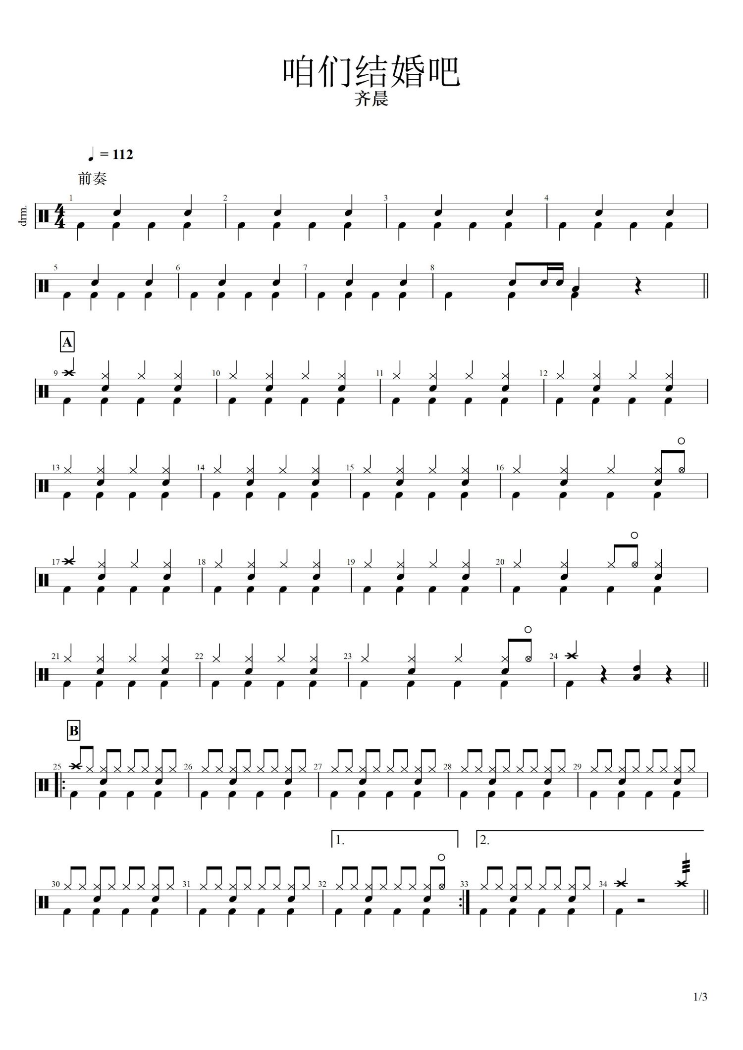 • 咱们结婚吧鼓谱 - 齐晨 - 架子鼓谱第1张
