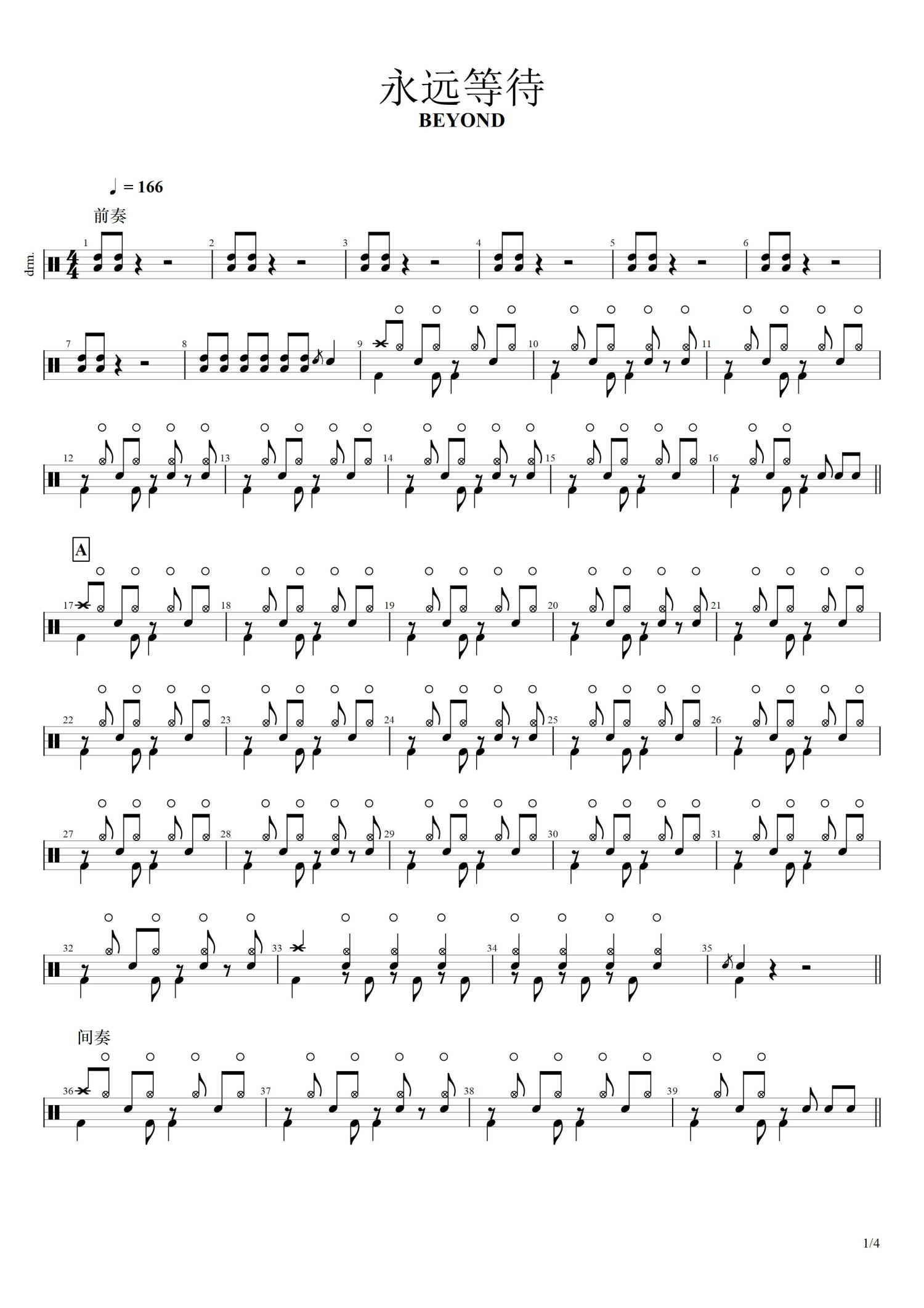 • 永远等待鼓谱 - Beyond - 架子鼓谱第1张
