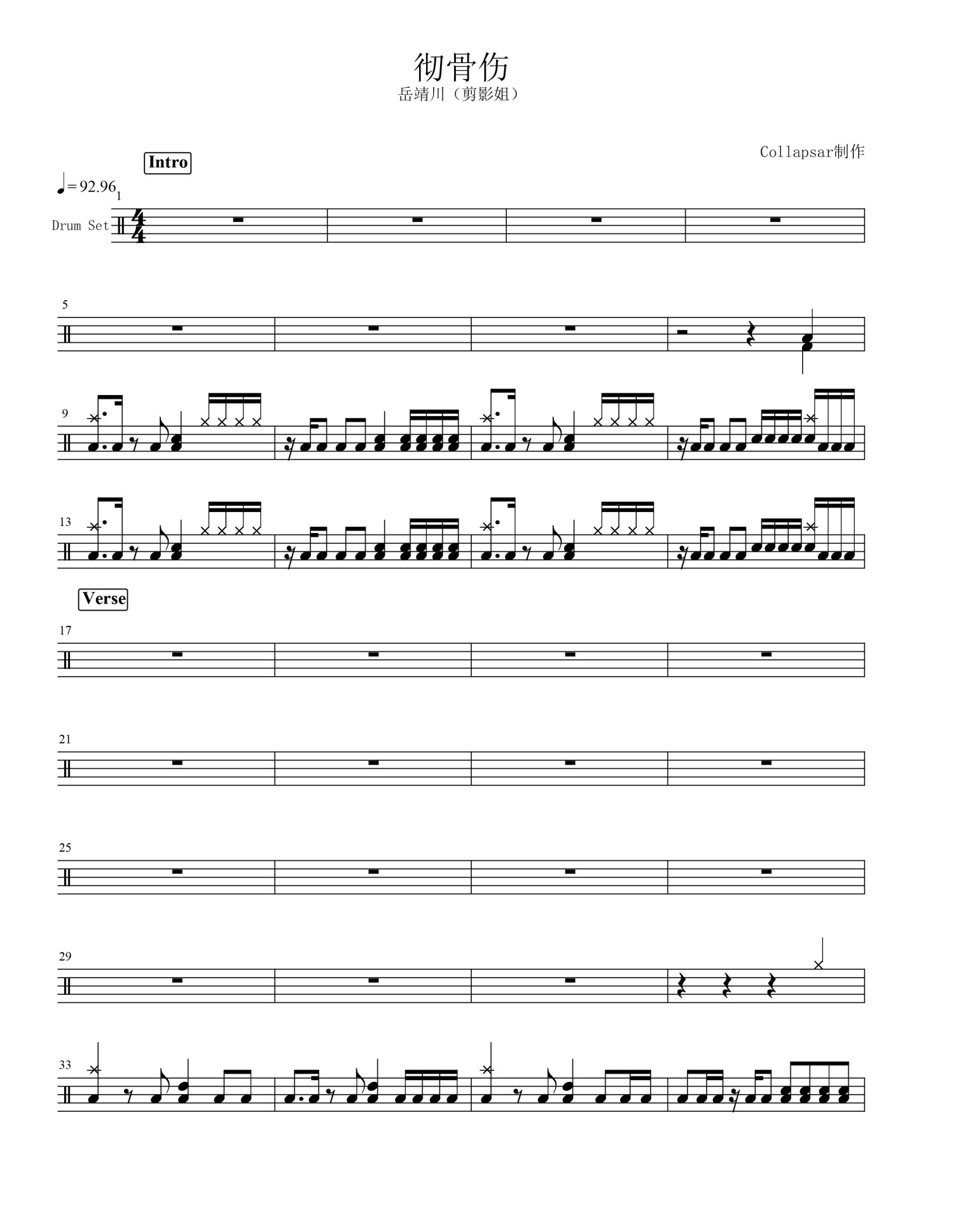 • 彻骨伤鼓谱 - 岳靖川(剪影姐) - 架子鼓谱第1张