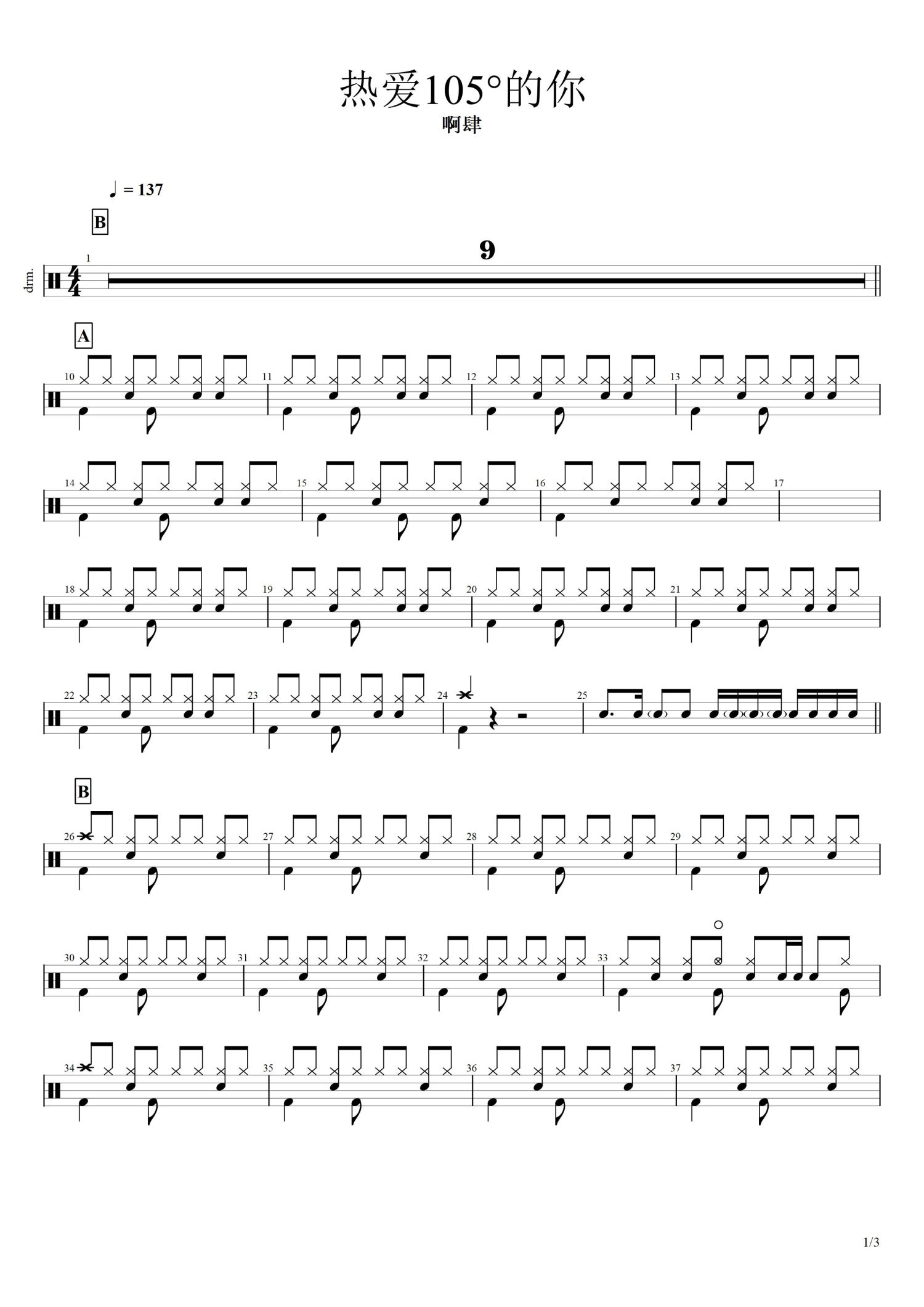 • 热爱105℃的你鼓谱 - 阿肆 - 架子鼓谱第1张