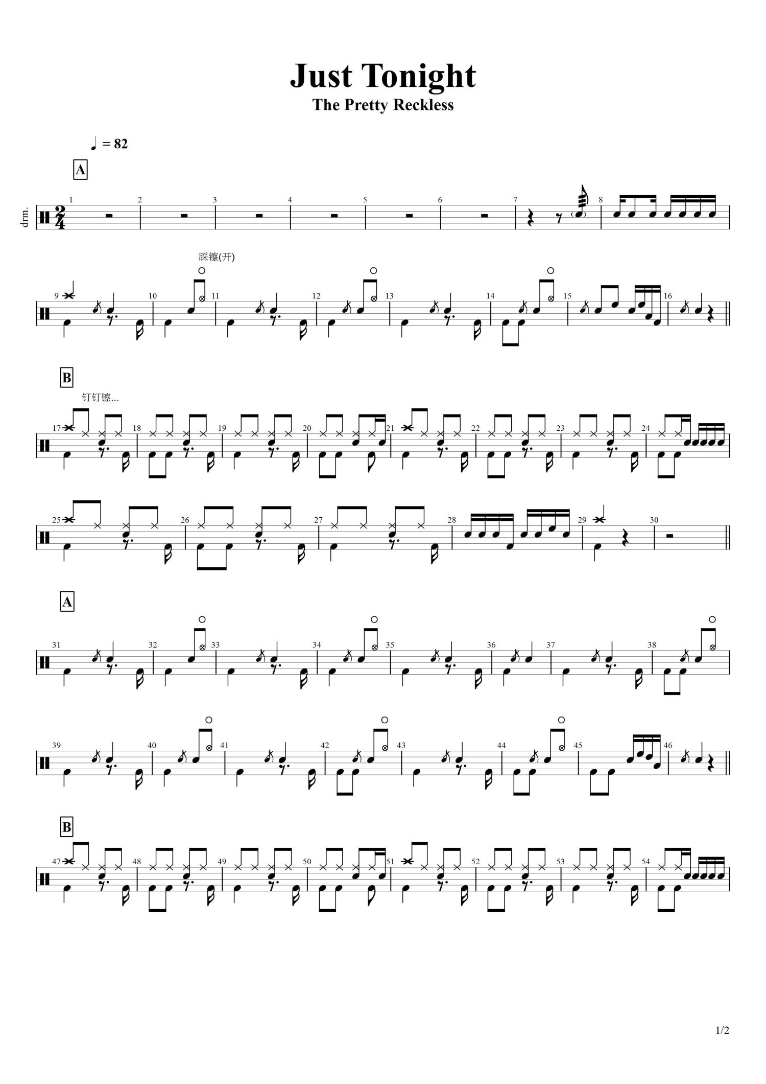 • Just Tonight鼓谱 - The Pretty Reckless - 架子鼓谱第1张