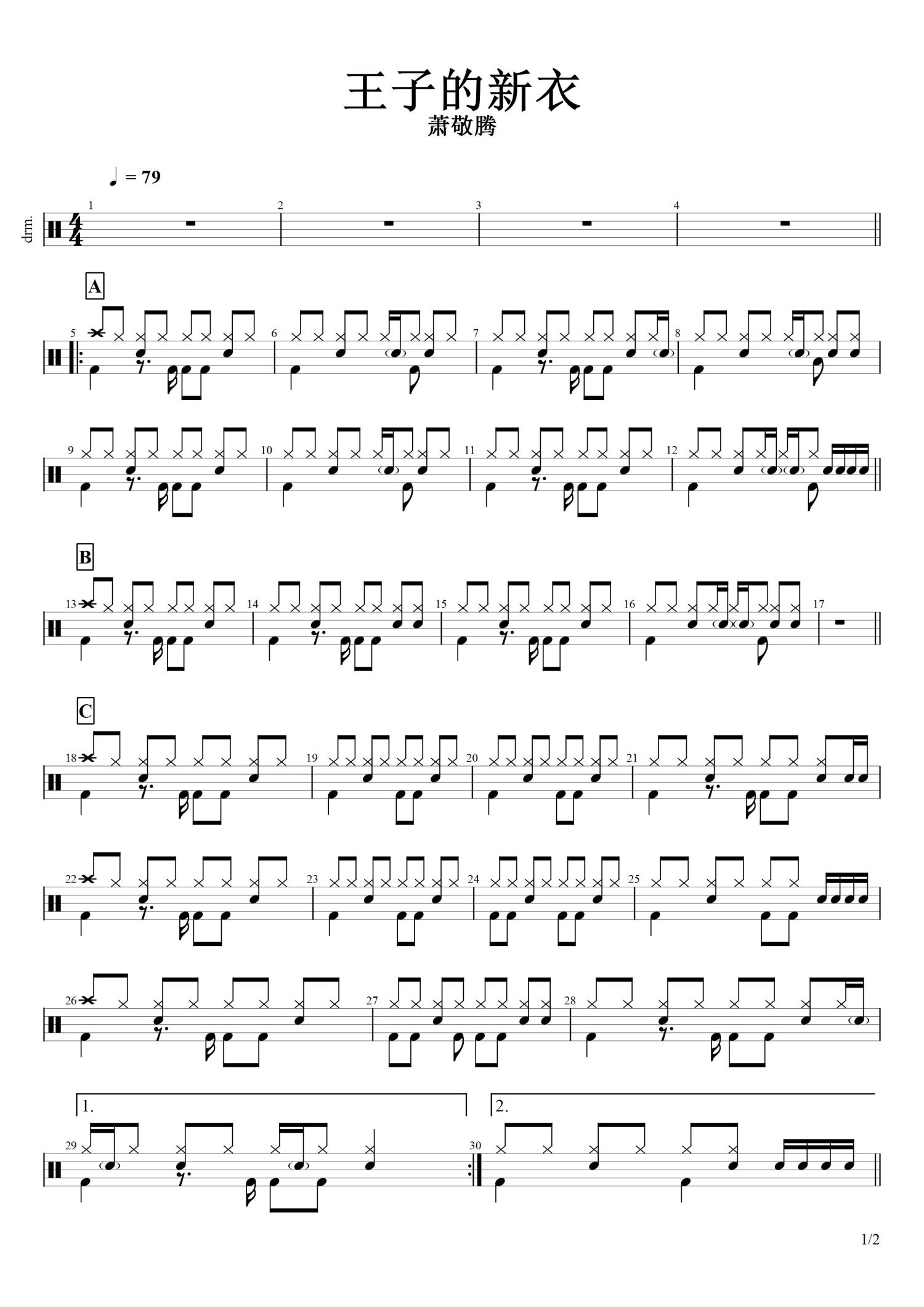 • 王子的新衣鼓谱 - 萧敬腾 - 架子鼓谱第1张
