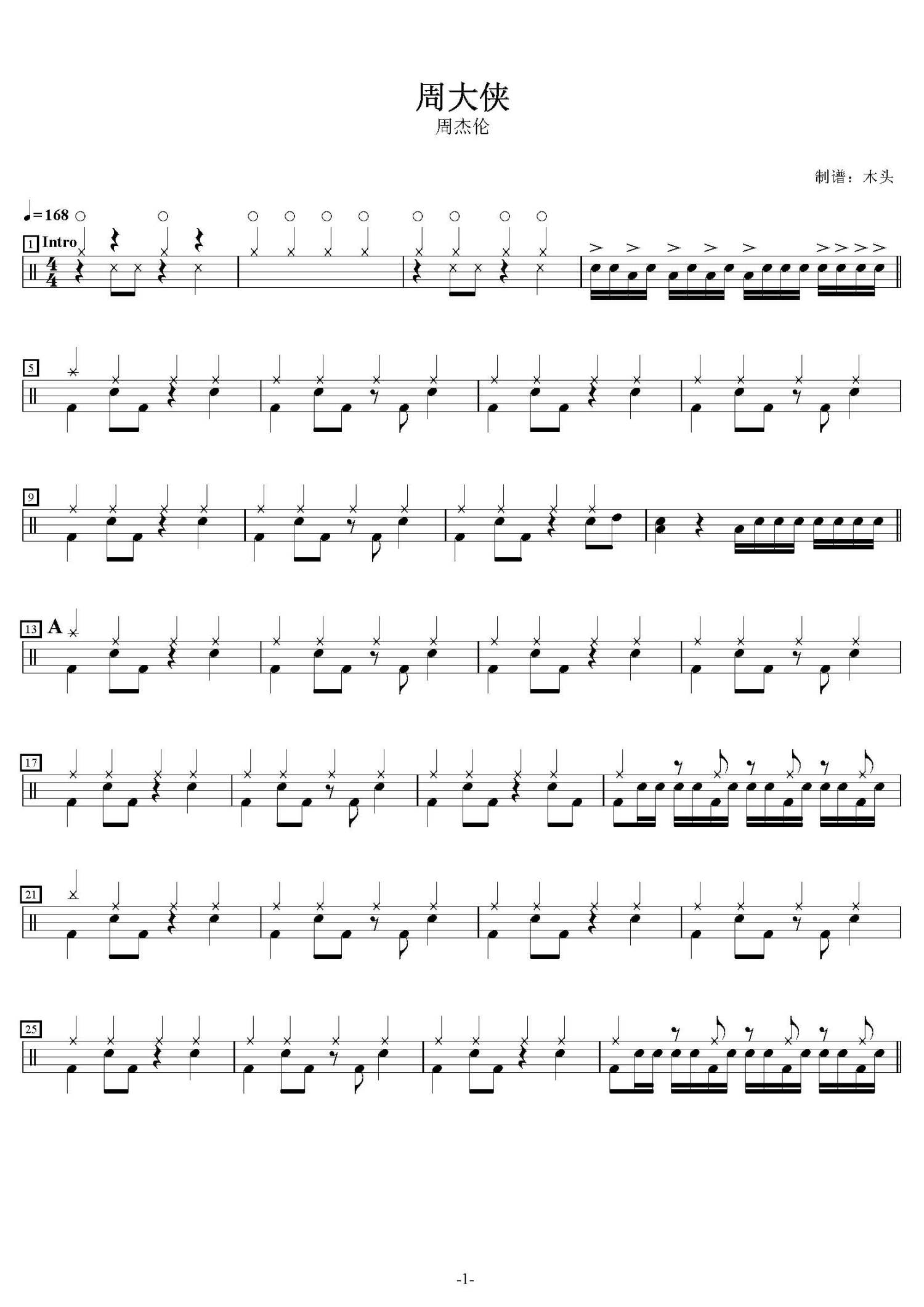 • 周大侠鼓谱 - 周杰伦 - 架子鼓谱第1张