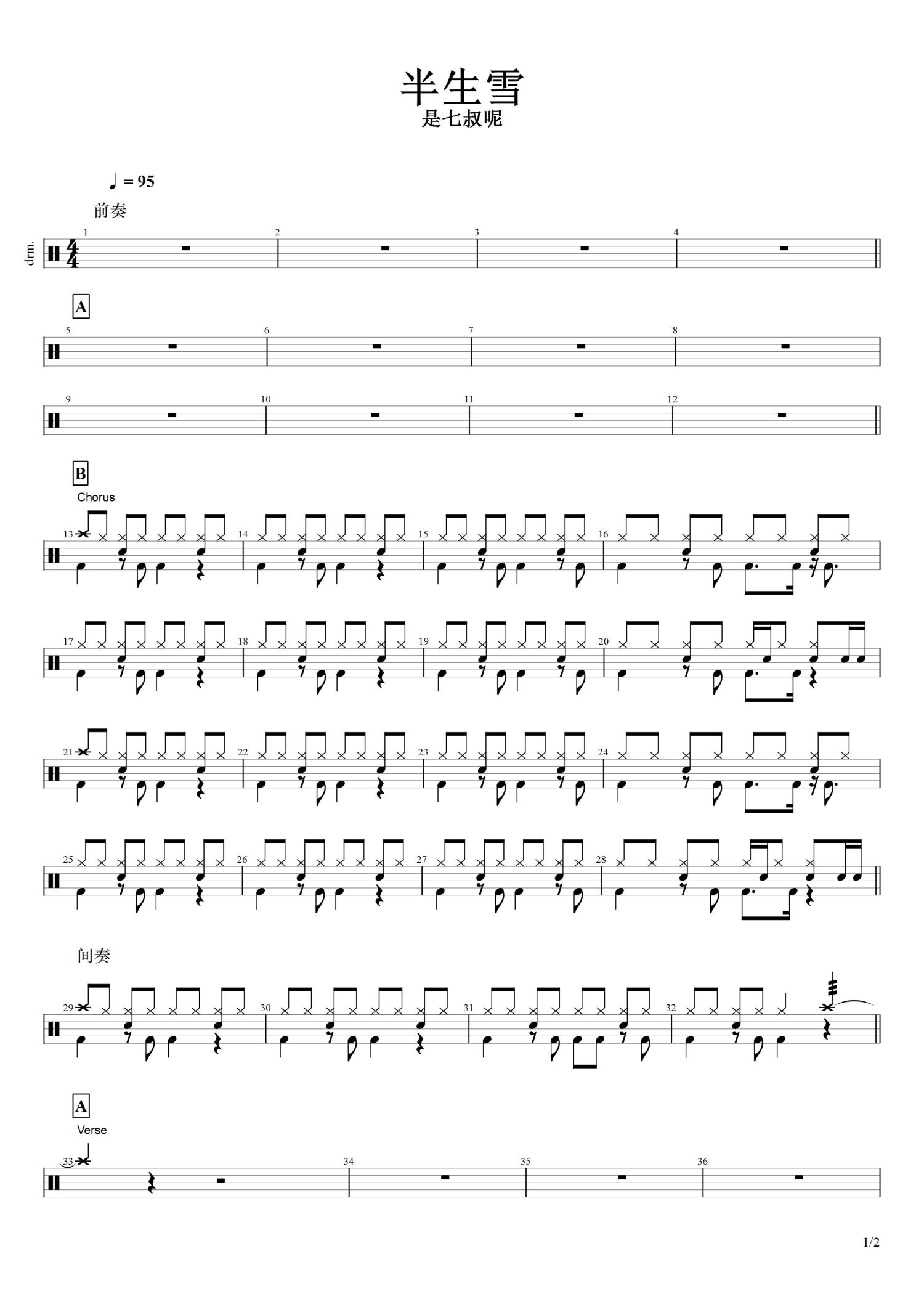 • 半生雪鼓谱 - 是七叔呢 - 架子鼓谱第1张