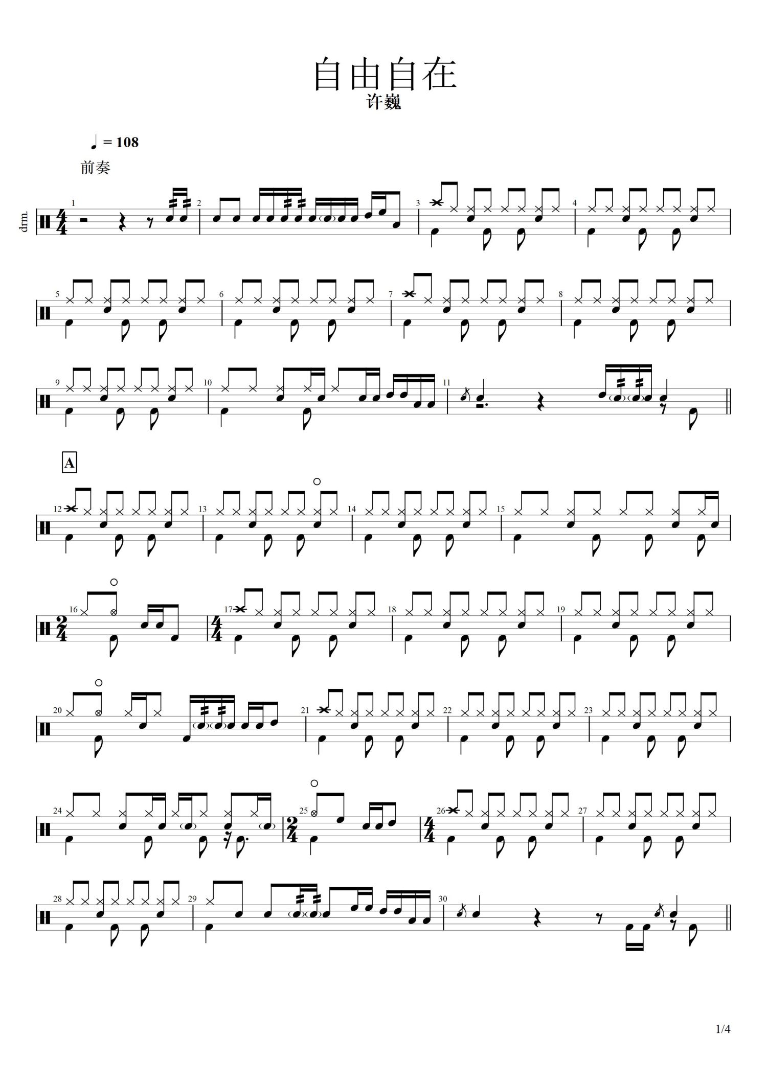• 自由自在鼓谱 - 许巍 - 架子鼓谱第1张